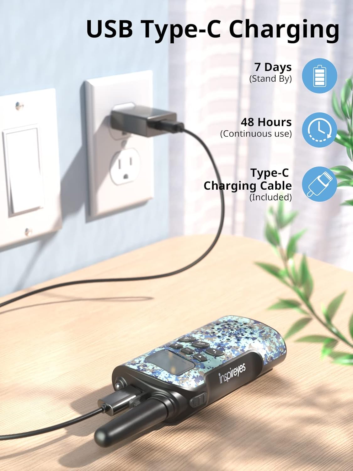 Inspireyes Rechargeable Kids Walkie-Talkie, 48 Hours Working Time, 3 Kilometers Long Range, Birthday Gifts for Boys Girls, Outdoor Toys for 3-12 Years Old Kids