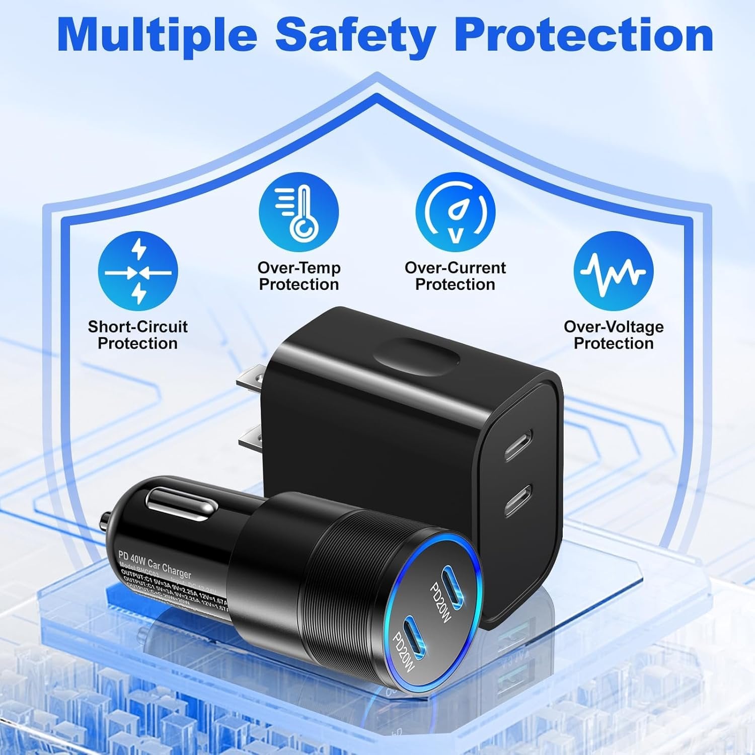 【USB C Car Wall Charger Kit】-The package includes 1 Pack 40W Dual C Port Car Charger, 1 Pack of 20W Dual USB C Wall Charger, and 2 Pack of Nylon braided USB C to C Cables (6FT) without having to buy them separately! You can use this charger kit for everywhere you want to go, enjoy fast charging at home/in office/for travel/in the car. If you have any concerns, please do not hesitate to contact us! We promise to solve your problems within 12 Hrs! 【40W Dual PD 3.0 USB C Fast Car Charger】- Pofesun 40W fast usb c car charger is equipped with dual PD3.0 USB-C fast-charge ports with the maximum output up to 40W in total. It supporting PD 20W(C1) and PD 20W (C2) high output, from Phone to Samsung to USB-C tablets and more, it can fast charging to virtually any mobile device at the same time.This usb c car adapter charges up to 4X faster,fast charging your Phone 15 Pro Max from 0% to 60% in just 30 mintus.Further saving your time. 【20W 2-Port Dual USB C Wall Charger】-The usb c phone charger is equipped with Dual USB-C ports,can fast charge 2 devices simultaneously.20W USB-C power adapter supports fast charging speed through smart PD 3.0 technology. Charging your Phone 15 up to 50% in just 30 minutes, 3x faster compared to an original 5W charger.Or pair it with the iPad Pro and iPad Air for optimal charging performance.The 20W USB C Power Adapter offers fast, efficient charging at home,in the office,or on the go. 【2-Pack 60W 6.6FT USB C to C Braided Charging Cables】- Attaching 2 pack 6.6ft 60W USB-C to USB-C cables featuring reinforced connectors and durable nylon. This type c to c cable supports PD 3.0 & QC 3.0 fast charging up to 60W(20V/3A) and works with USB-C Power Delivery adapters such as 30W/45W/60W. Charges USB-C phones from 0% to 80% in 35 minutes,with data transfer speed up to 480Mbps.Also,6.6ft extra length allowing you to comfortably charge your device from the comfort of your bed,couch,or at office. 【Universal Car Charger & Wide Compatibility】- This car charger adapter compatible with 12-24V cars (cars, SUVs, trucks, etc). This fast charger kit is compatible with for Phone 15/15 Plus/15 Pro/15 Pro Max, New 2021 iPad Mini 6th Generation, 2021/2020/2018 iPad Pro 12.9 in 5th/4th/3rd Generation, iPad Pro 11 in 3rd/2nd/1st Generation(2021/2020/2018), iPad Air 4th generation (2020).Also support charge for Samsung Galaxy S24/S23/S22/S21/S20/S10, Note 20/Note 10 and more USB-C powered devices.