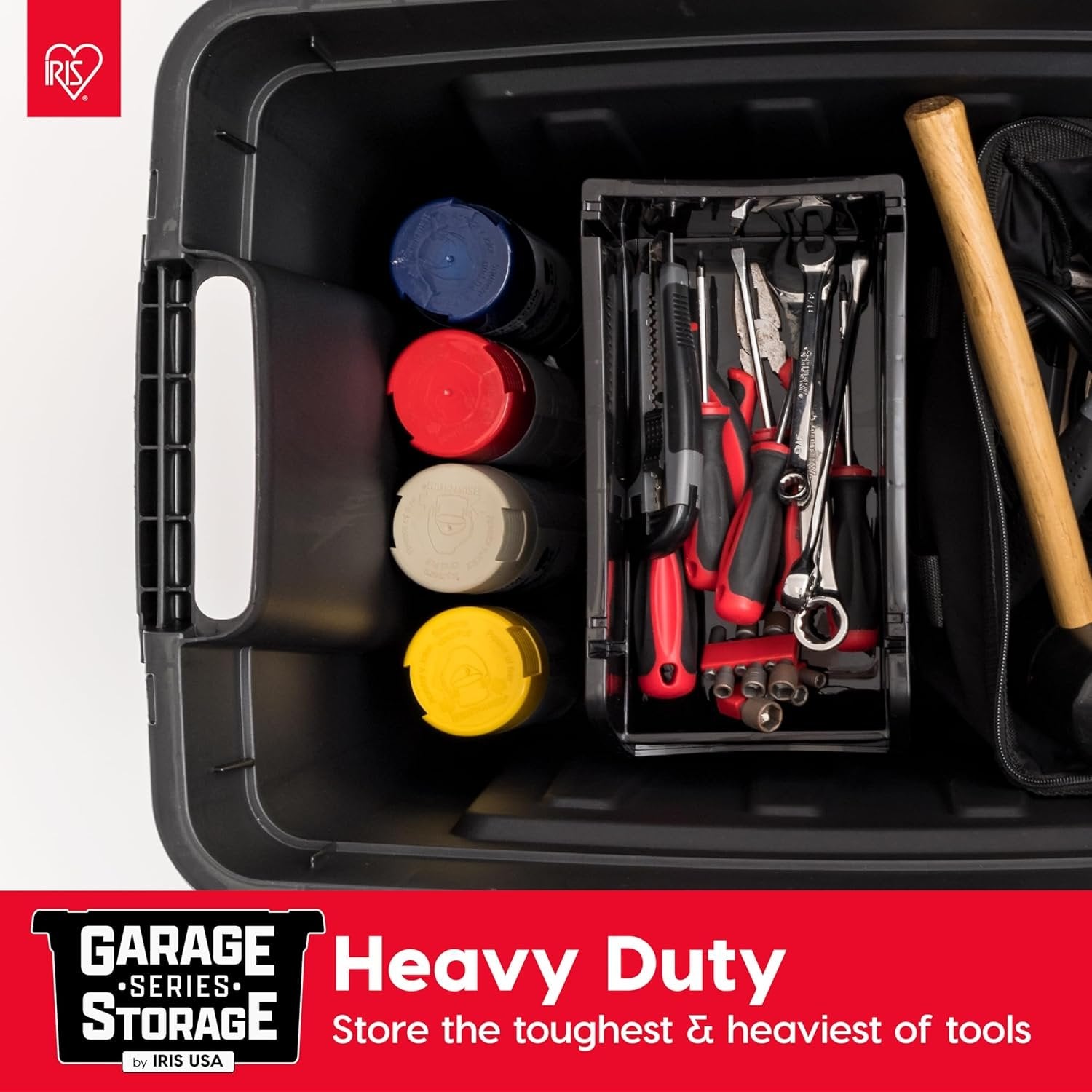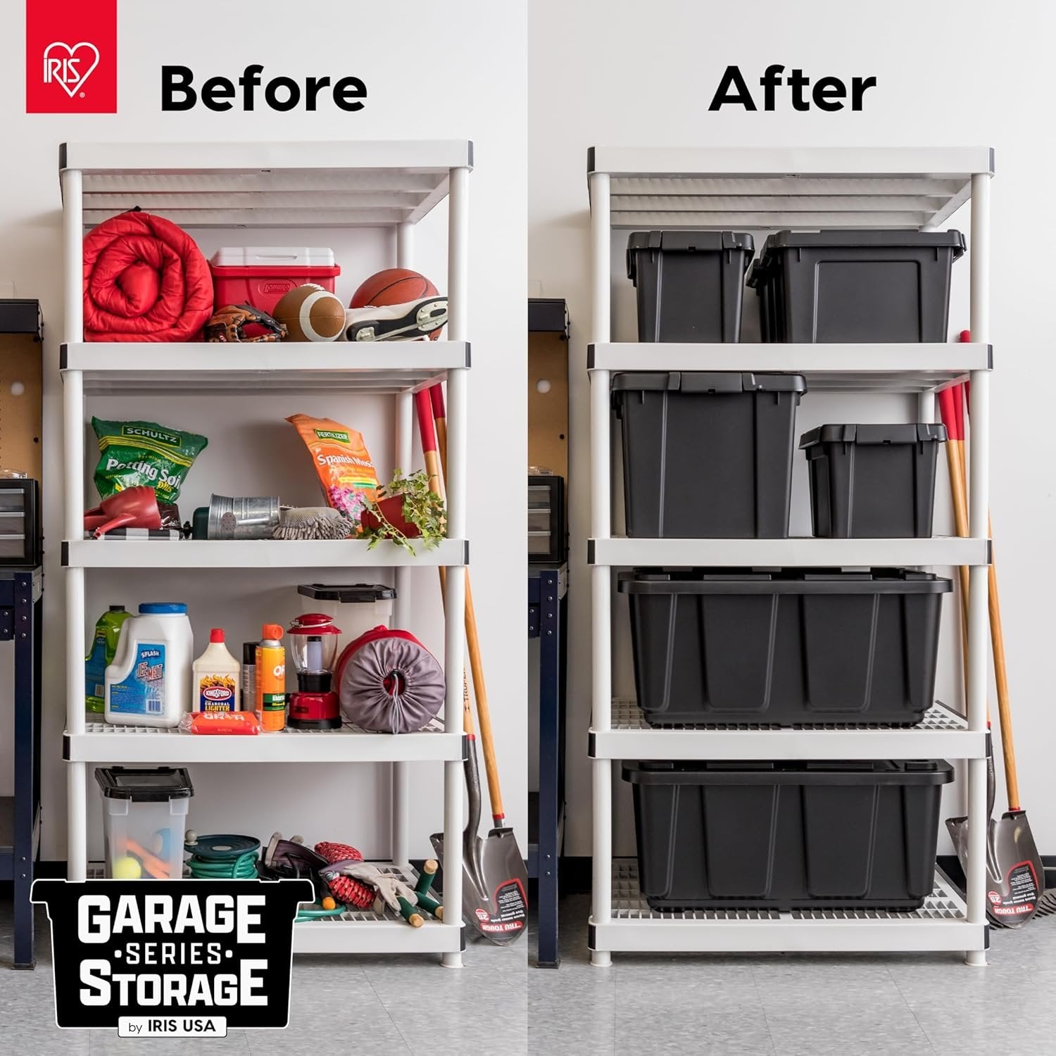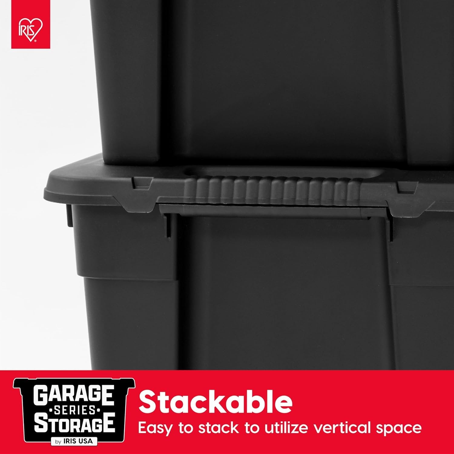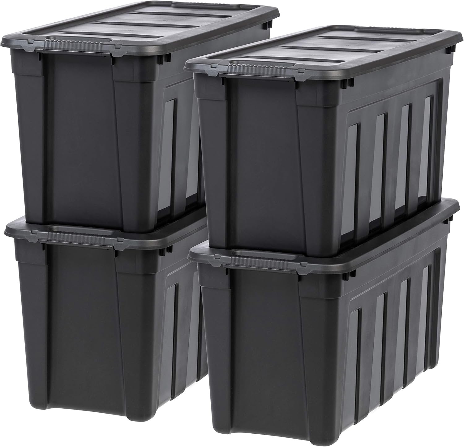 IRIS USA 117.4 L Heavy Duty Totes for Storage with Easy-Grip Handles, 4 Pack, Storage Bins with Lids, Durable Stackable Utility Containers, Large Garage Organizing Tubs - Black