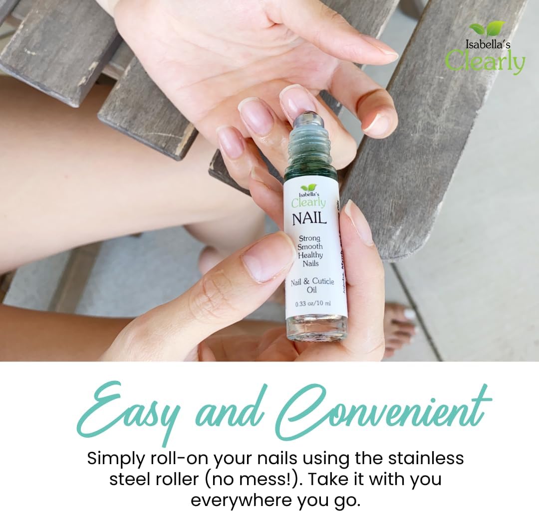 Isabella's Clearly NAIL and Cuticle Oil for Strong Nails and Soft Cuticles | Strengthening Roll On Nail Oil with Tea Tree, Jojoba and Blue Tansy to Repair and Nourish | Natural Essential Oil Blend