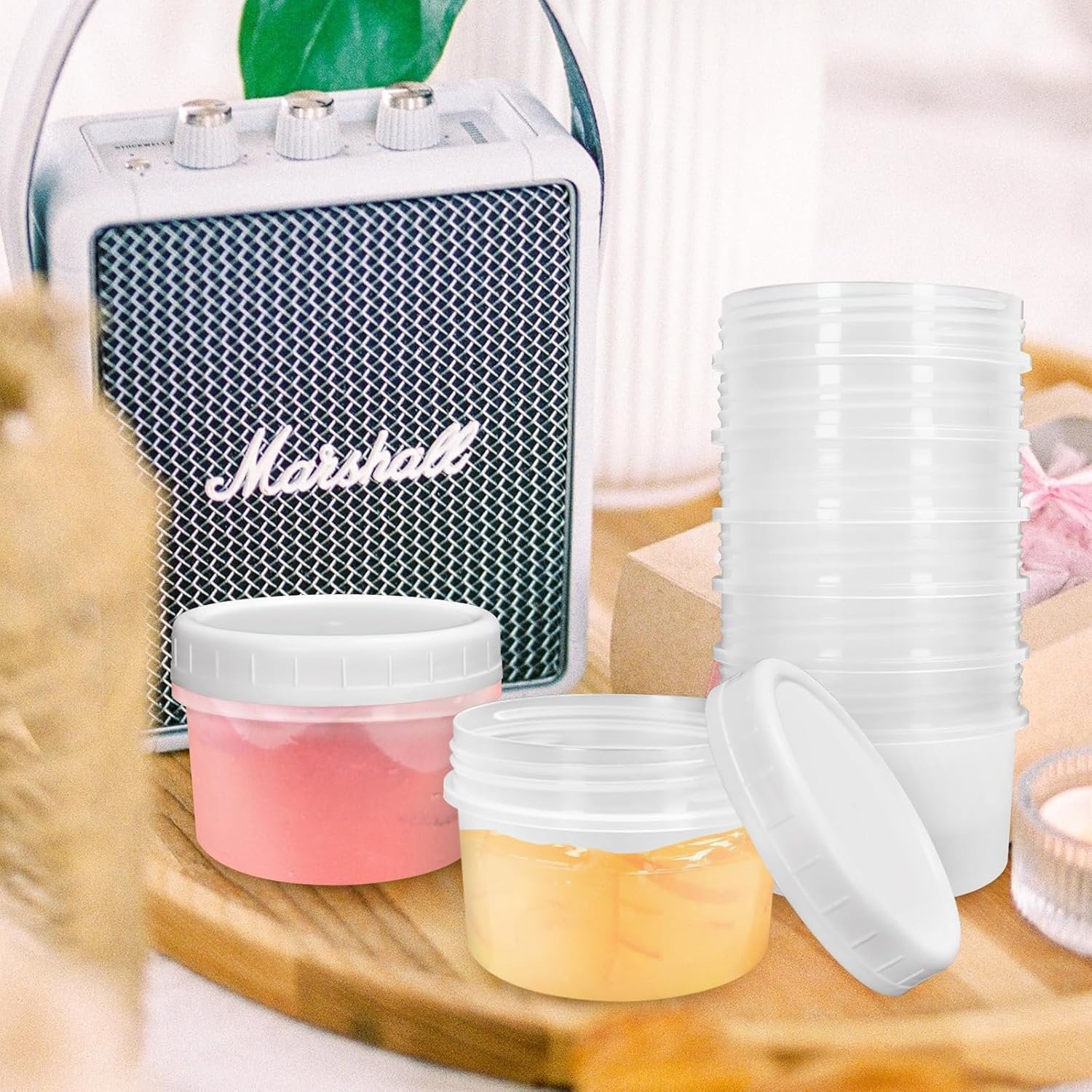 Brand-ISUSSER Colour-White Material-Plastic Material feature-Reusable BPA Free Food Grade, Reusable, bpa_free, Freezer Safe, Food Grade 4oz Reusable Small Plastic Containers with Screw Lids, Small Food Storage Freezer Containers, Deli Containers Stackable Food Storage Jars, Sauce Condiment Jars Lunch Box Accessories Package Includes: You will get 10pcs small plastic food freezer storage containers with lids, about 4oz, sufficient for your daily use and replacement. Quality Material: These freezer jars are made of food grade PP plastic, BPA free, non toxic and odorless, sturdy and reliable, can be applied for many times. Stackable: These small deli containers with lids come with a flat top, you can enjoy the ease of being able to stack and nest them together for efficient storage when not in use, saving space and energy. Keep Orderly and Convenient: Help us store homemade yogurt, ice cream, meal prep and so on in fixed small portions in freezer easily. When you or your family want to enjoy it, indirectly take out a portion of food and heat without affecting other parts. Broad Applicability: These small plastic containers are ideal for nuts, dried fruits, sauce, leftovers and so on, also you can put into biscuits, candies and other small snacks, as well as buttons, sewing supplies and other art crafts.