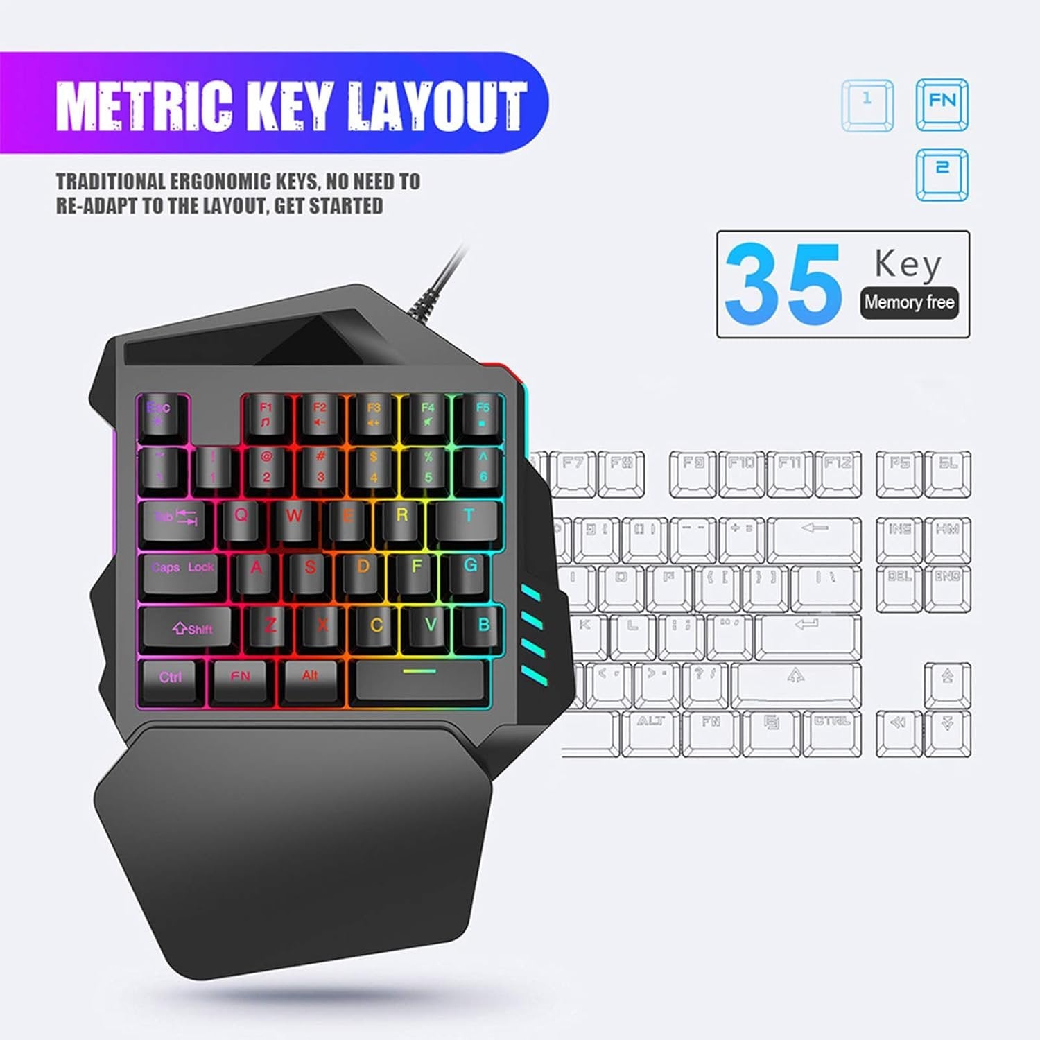 J50 One-Handed Gaming Mouse and Keyboard Set for Win2000/Android/OS X - Essential Computer Accessory for Gamers