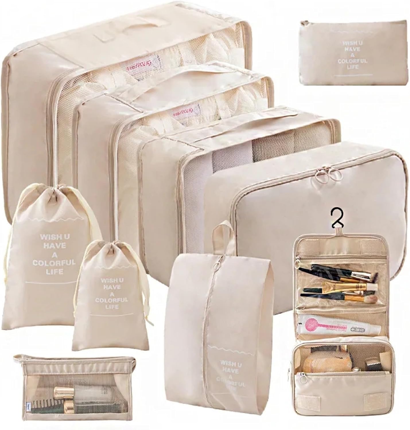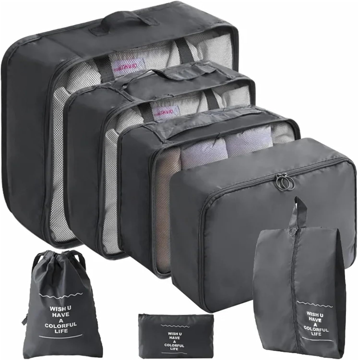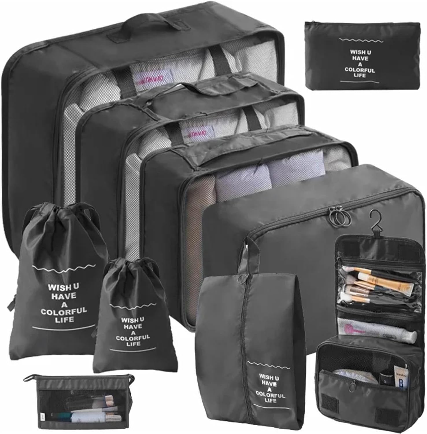 Janmobrian Organizer Valigia,Packing Cubes 10/7 PCS Set Travel Organizer Storage Bags Suitcase Packing Cubes Cases Portable Wardrobe Luggage Clothes Shoe Pouch Fold(10pcs Grey)