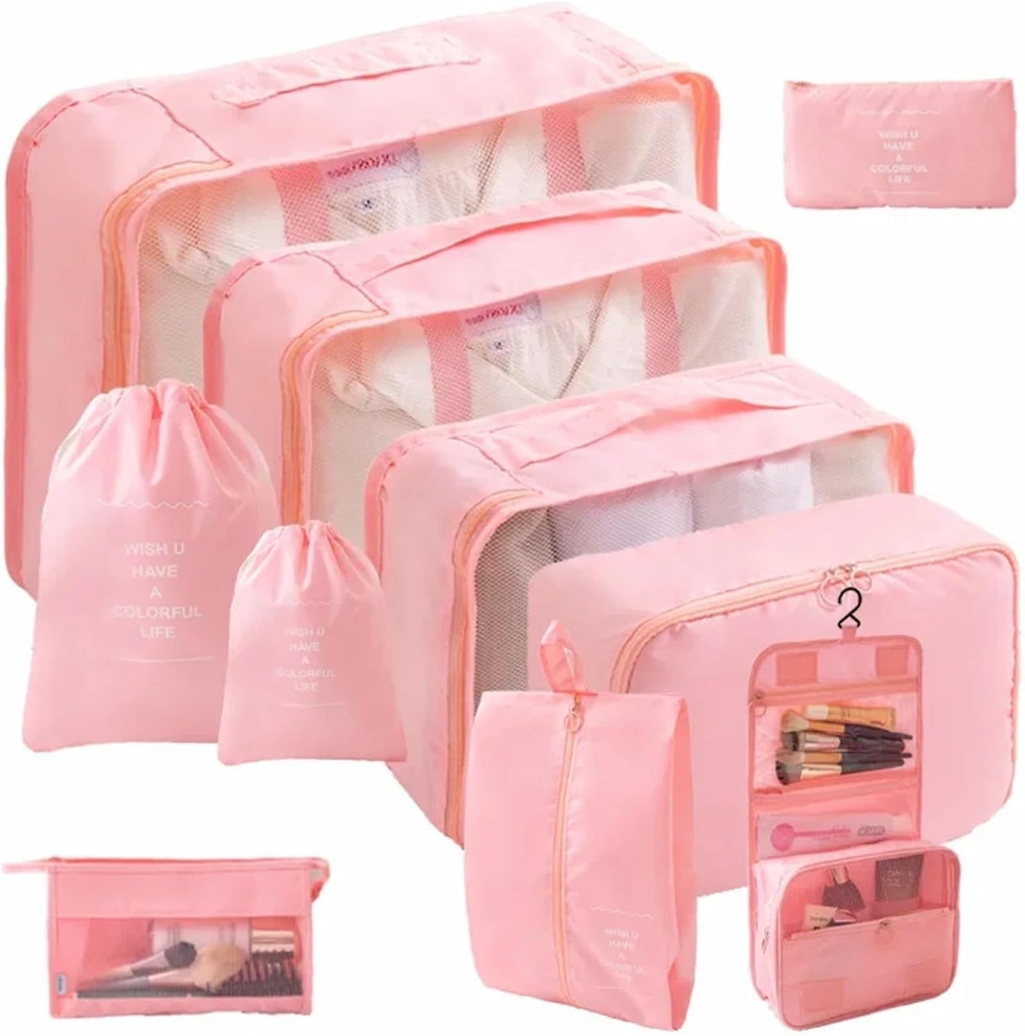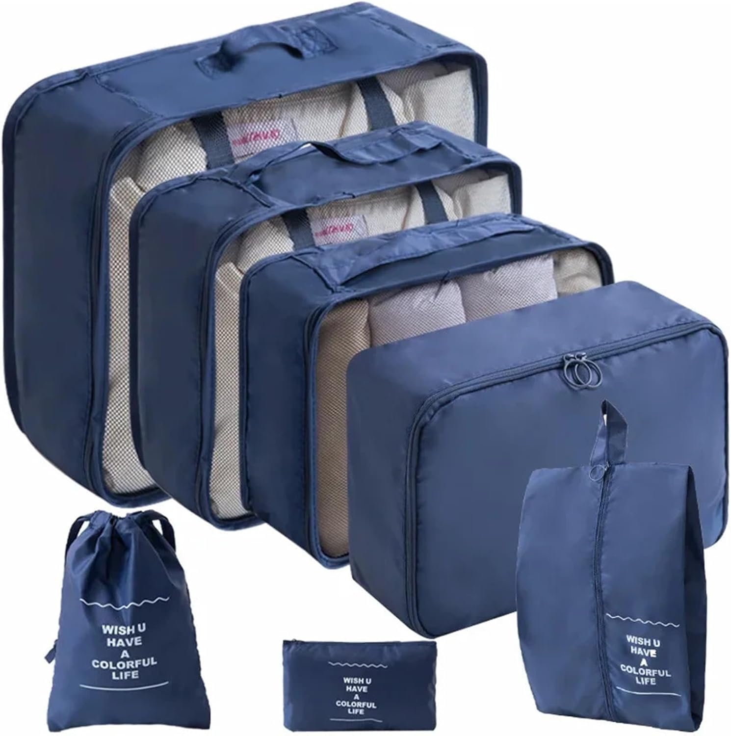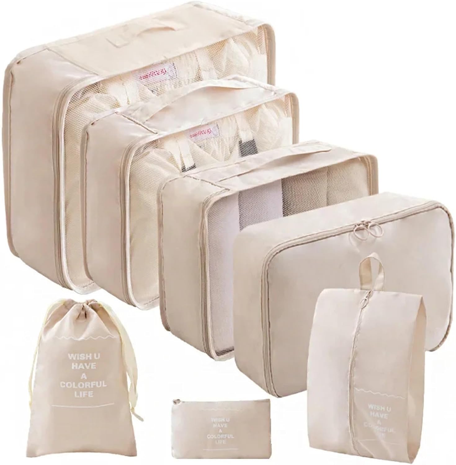 Janmobrian Organizer Valigia,Packing Cubes 10/7 PCS Set Travel Organizer Storage Bags Suitcase Packing Cubes Cases Portable Wardrobe Luggage Clothes Shoe Pouch Fold(10pcs Grey)