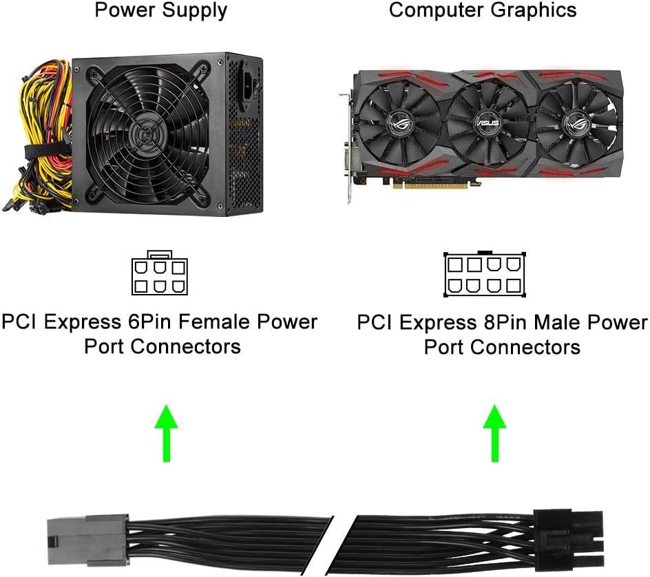 J&D PCIe 6 Pin to PCIe 8 Pin Power Adapter Cable (2 Pack), PCI Express 6 pin to 8 pin Adapter Power Cable, 12 inch