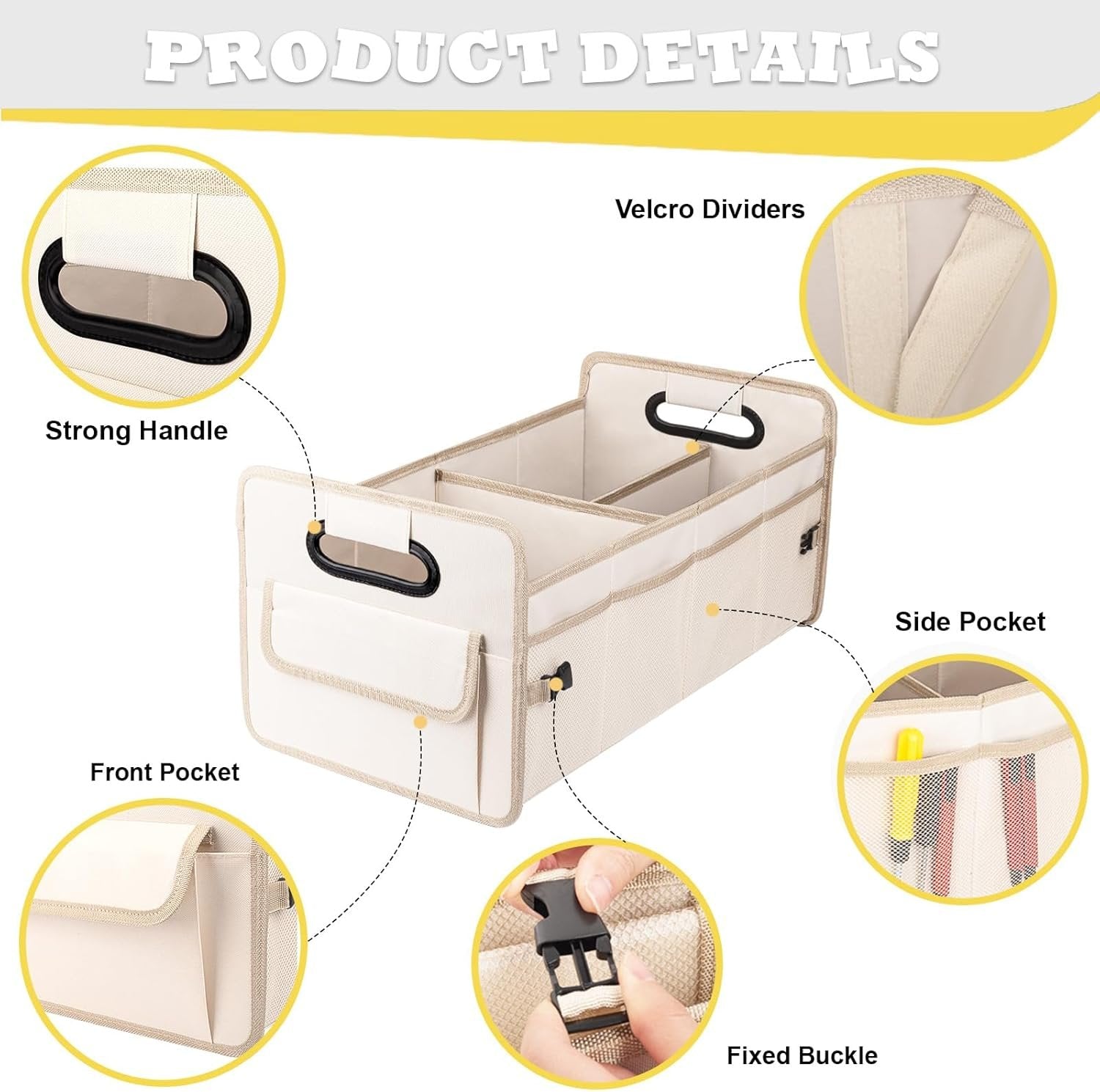 JiatuA Car Trunk Organizer, Car Organizers and Storage Collapsible Multi Compartment Container Box, Adjustable Car Accessories for SUV Sedan Truck, Standard Size, Beige