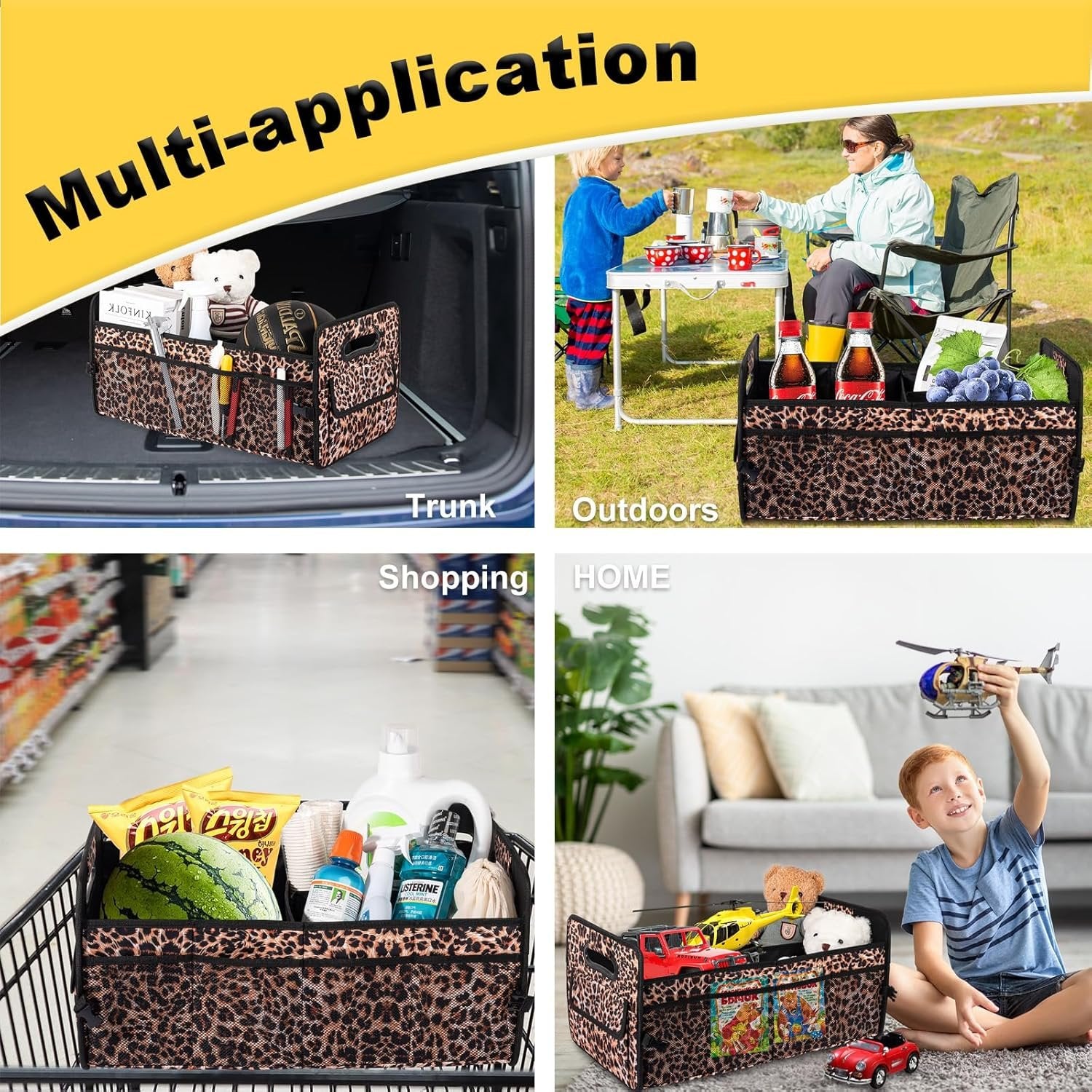 JiatuA Car Trunk Organizer, Car Organizers and Storage Collapsible Multi Compartment Container Box, Adjustable Car Accessories for SUV Sedan Truck, Standard Size, Leopard print