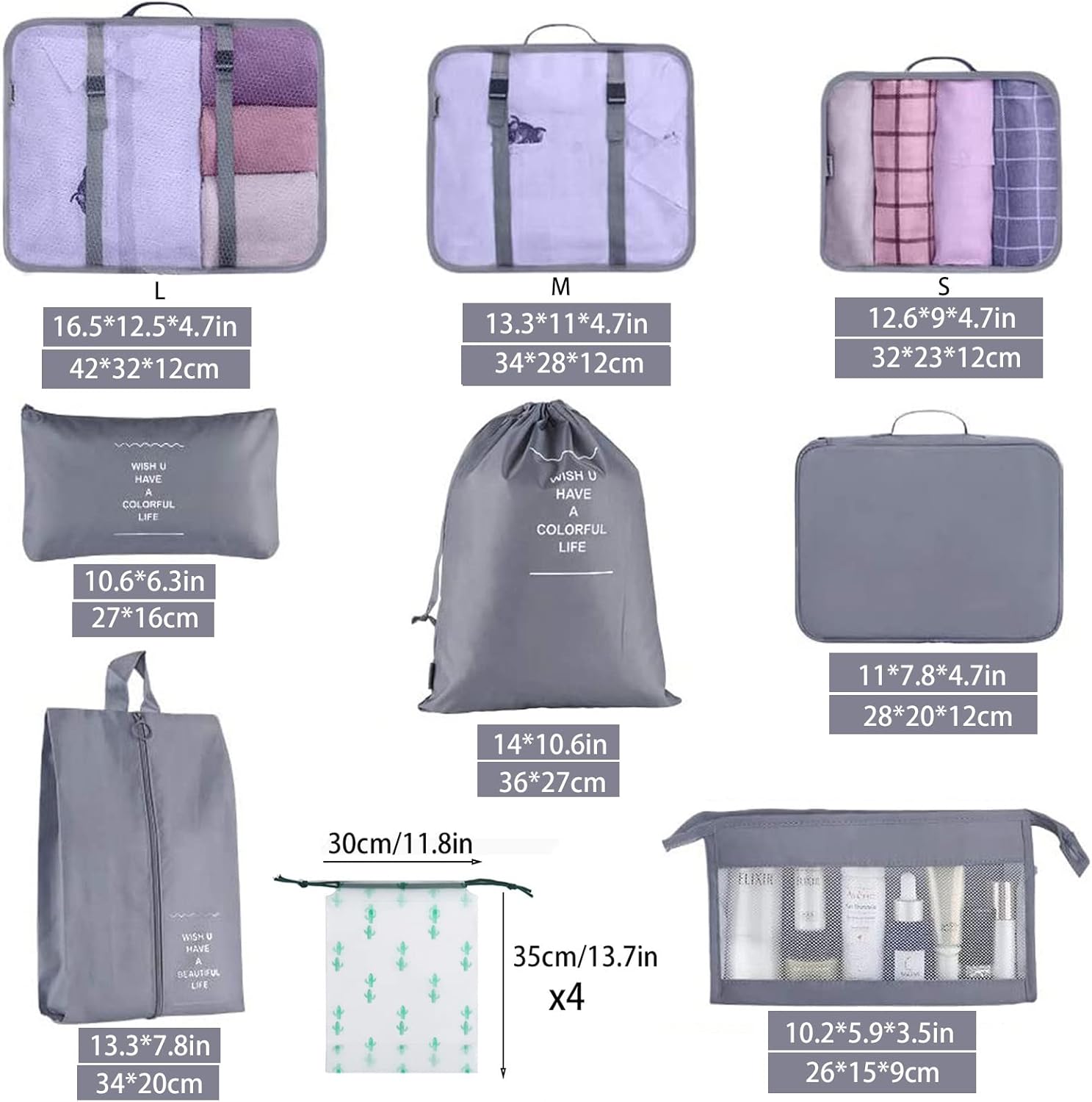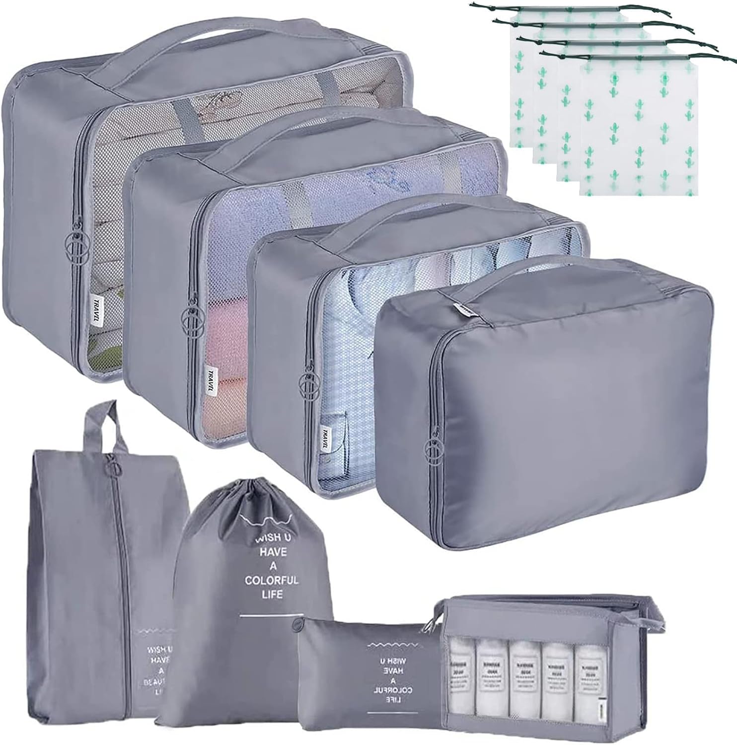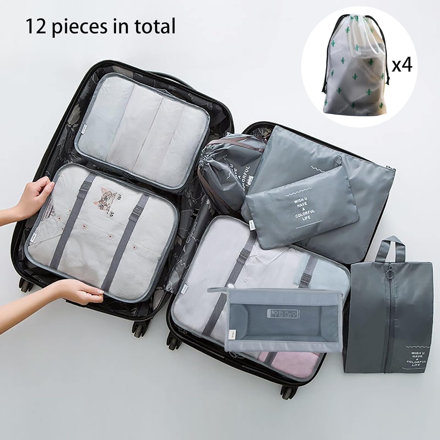 Jikekiroto 12-Piece Travel Organizer Suitcase Set Luggage Packing Set Travel Cubes Packing Organizers Sacks Storage Suitcase Set (Grey)