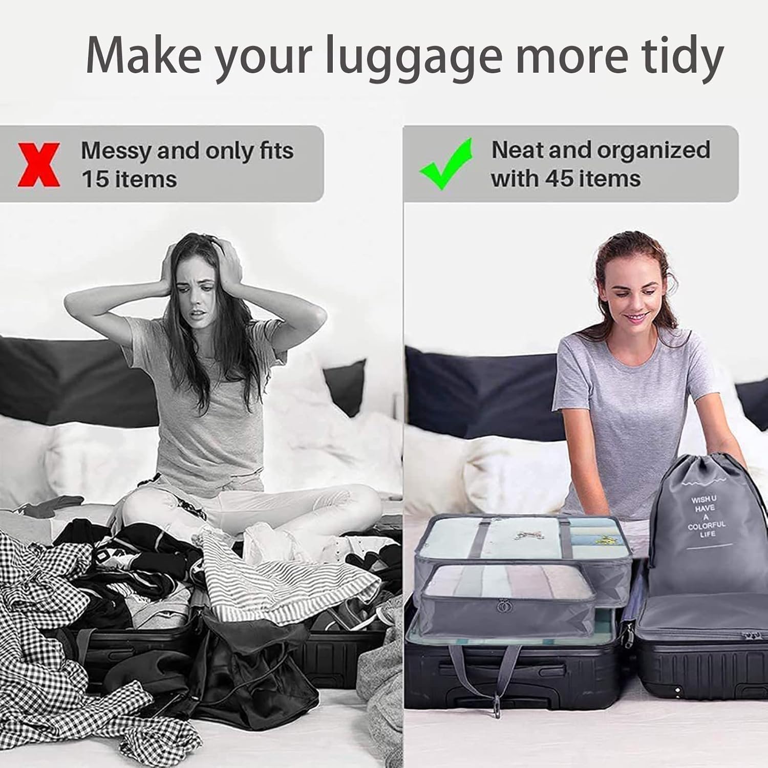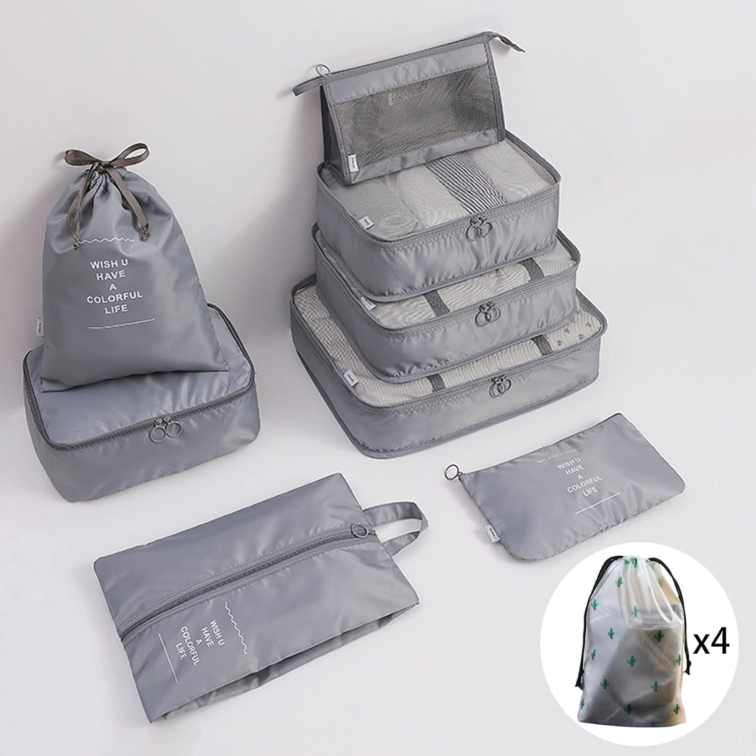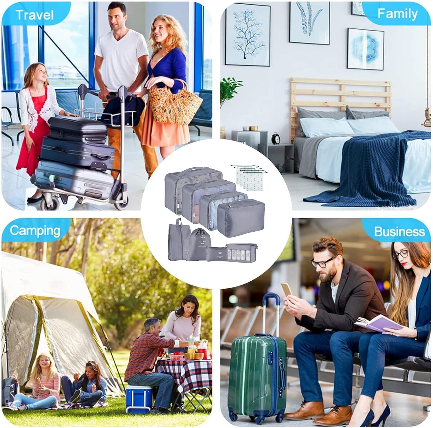 Jikekiroto 12-Piece Travel Organizer Suitcase Set Luggage Packing Set Travel Cubes Packing Organizers Sacks Storage Suitcase Set (Grey)