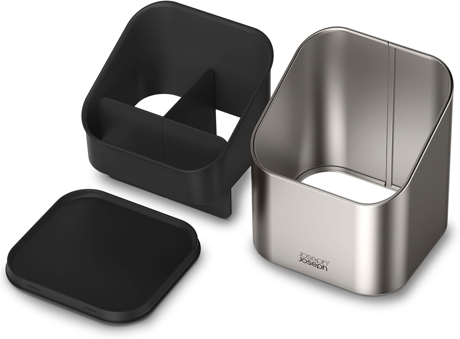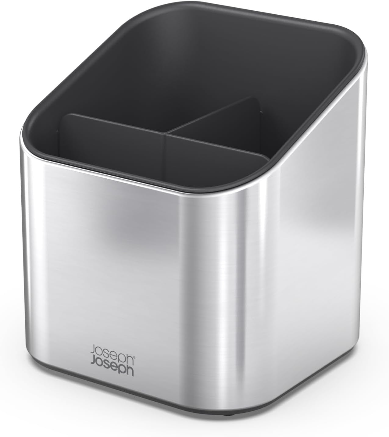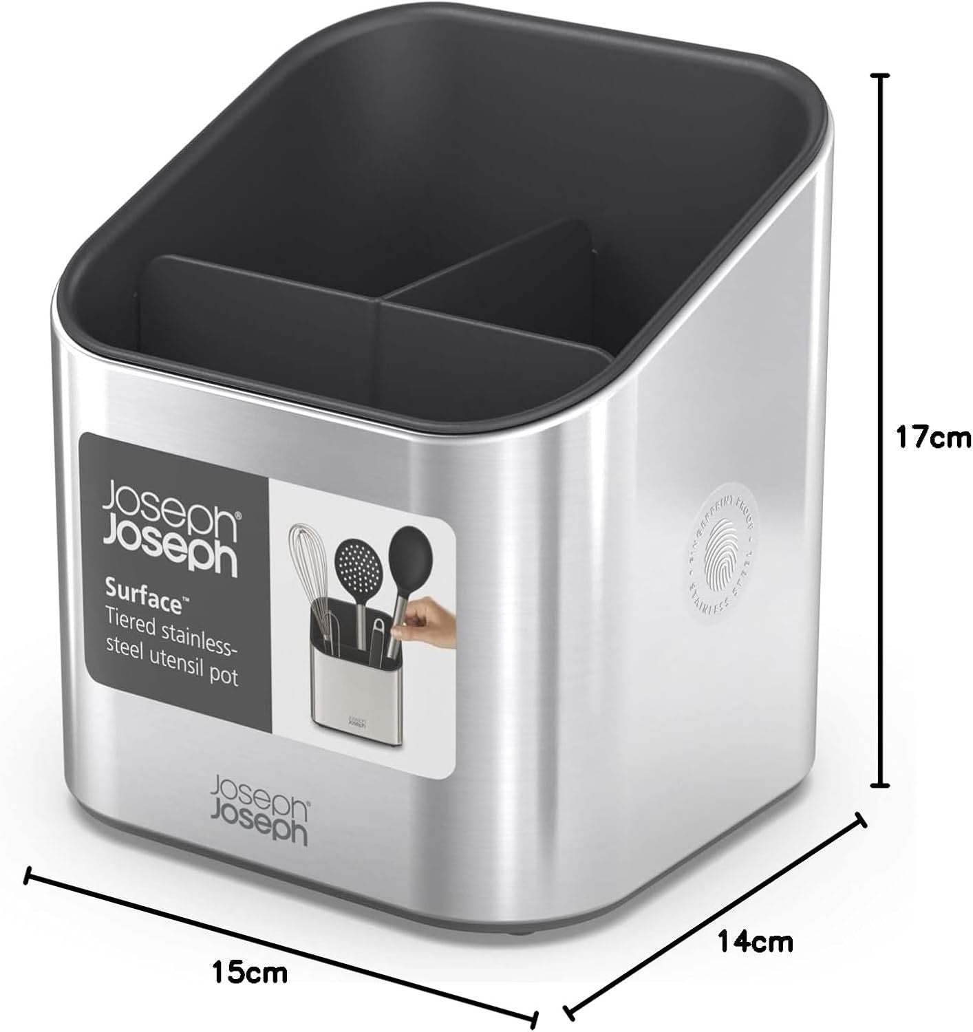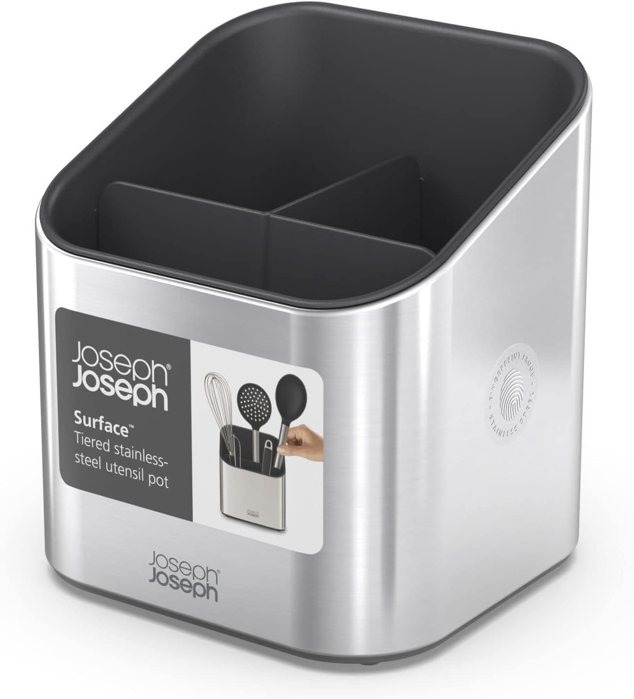 Joseph Joseph Surface Stainless Steel Utensil Holder with Large Capacity, Non-Slip Feet and Dividers, Fingerprint Proof Kitchen Utensil Holder and Gadgets - Grey