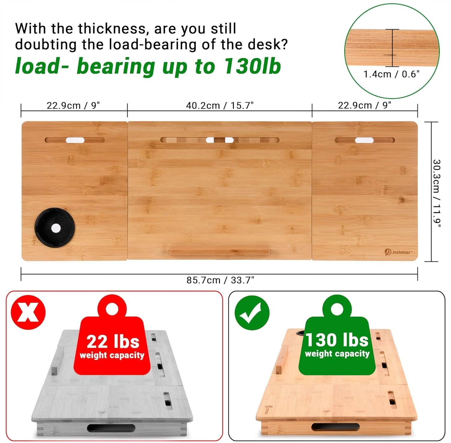 ✅STAY ACTIVE, WORKING, AND FOCUSED – JOSHMAR standing desk treadmill provides you the ability to let you walk and work “on the go”. By connecting with your treadmill, you can get up and move as you are writing emails, planning business ventures, or reading books. ✅UNIVERSAL ADJUSTABLE TREADMILL DESK – Our walking treadmill desk adjusts from 33.6” in length to 11.8” wide with secure straps on both sides. You can easily get it to fit to your treadmill model. Great for people who loves their time and stay always productive! ✅PREMIUM BAMBOO DESK CRAFTSMANSHIP– Offering strength, style, design, and balance, this Treadmill Stand is made of 100% sustainable bamboo to secure durability and long-lasting resilience. Nevertheless, it is portable and has the perfect fit for home or office use! ✅ERGONOMIC RISER – The center piece of our Treadmill Desk has an adjustable riser to help you find the right height while using your keyboard. Our mayor challenge is providing you with comfort by sustaining your productivity and typing skills efficiently even as you walk. ✅HOLDS ESSENTIAL EXTRAS– The wide shelf space on the left side of our Treadmill Desk not only has a cup holder, but also features space to hold smartphones and tablets by giving a charger device accessibility to avoid running out of Battery.