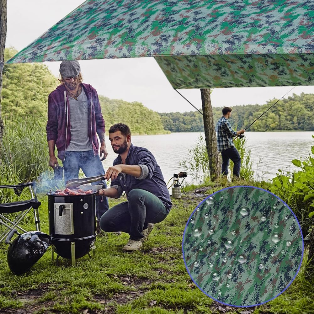 Waterproof and Sun Proof: Waterproof hammock rain fly will keep you dry in some bad weather; With 210T waterproof printed cloth; Camping tent tarp also can be put up as awning is effectively for blocking ultraviolet ray and protect your skin from the sun Multipurpose and Versatile: This tent tarp for hiking and tent footprint for travel also makes an excellent rain tarp, survival shelter, picnic or beach mat, tent footprint, camping tarp, hammock rain fly, sunshade, beach mat, picnic blanket, ground mat or a rain shelter when backcountry camping Ultra Light and Portable: This tent floor ground sheet is designed to be ultra light and easily portable, making camping tarp for backpacking an ideal companion for various outdoor activities such as camping, hiking, beach outings, and picnics Space Saving: When not in use, the rain fly hammock tarp cover is easy to fold and store; Its compact design means it takes up minimal space in your backpack, allowing you to pack efficiently and travel light; The tent footprint for outdoor is designed to be space saving without compromising on functionality Convenient and Spacious: With this ground cloth footprint shelter, you can comfortably spend time with friends and family, whether chatting, playing, or relaxing, thanks to its ample coverage; Whether you're camping in the wilderness or enjoying a sunny day at the beach, this rainfly tarp for hammock camping will keep you dry and shielded from harmful UV rays