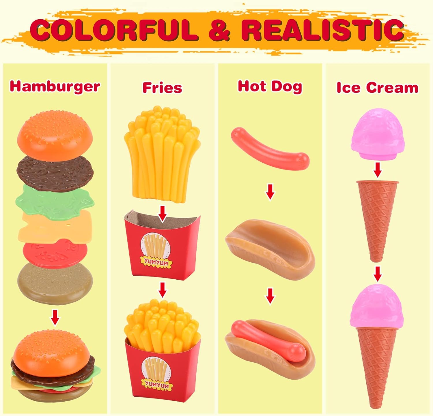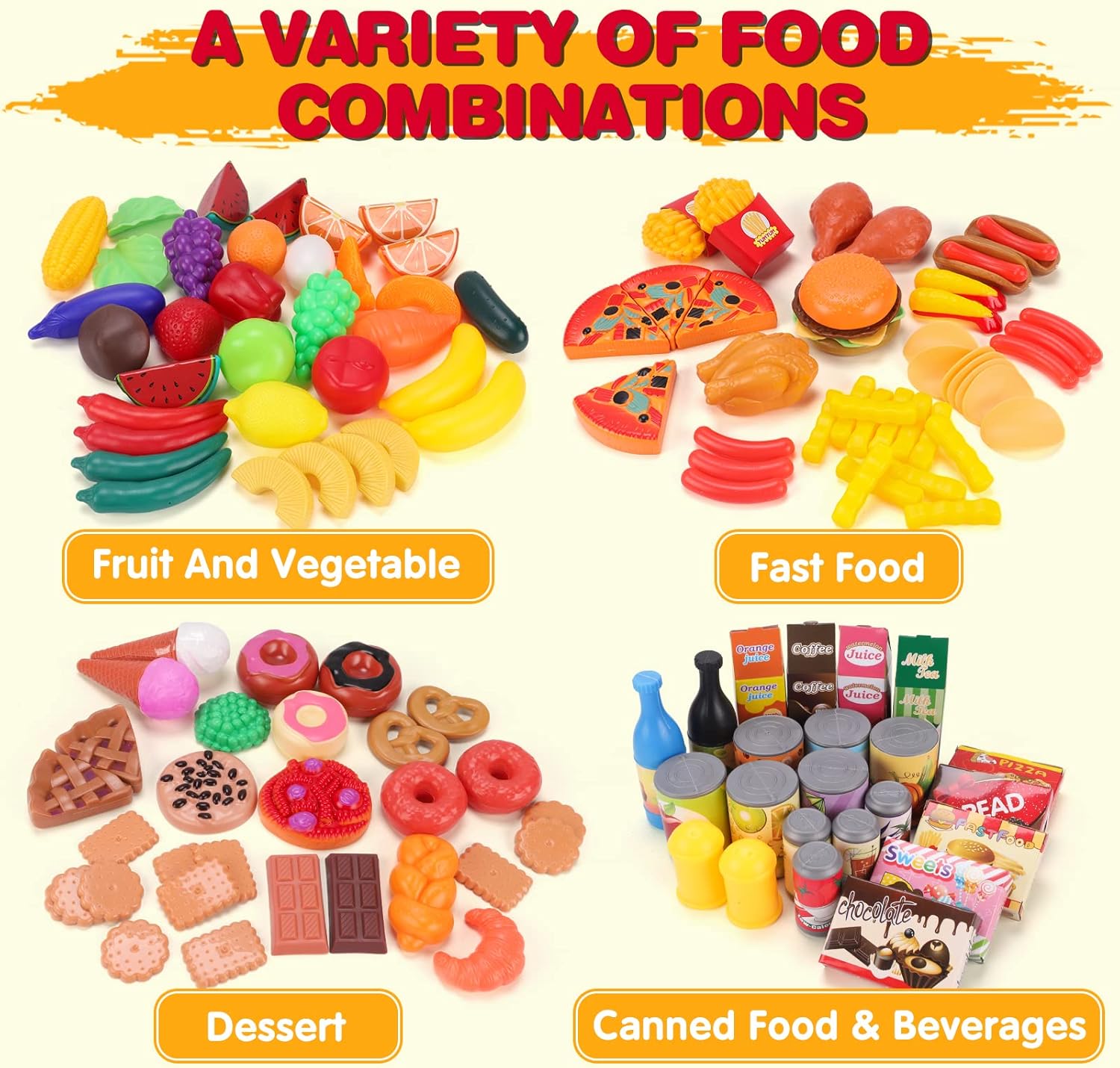 KaeKid 137 PCS Pretend Play Food Toys for Kids Kitchen Accessories Set, Toy Food Assortment, Preschool Kitchen Toys for Kids Girls Boys