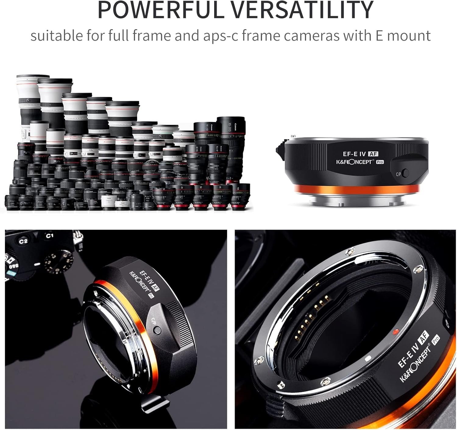 K&F Concept EF-E Electronic Auto Focus Mount Adapter for Canon EF/EF-S Mount Lens to Sony E Mount Cameras with Electronic Contacts Mount Image Stabilization