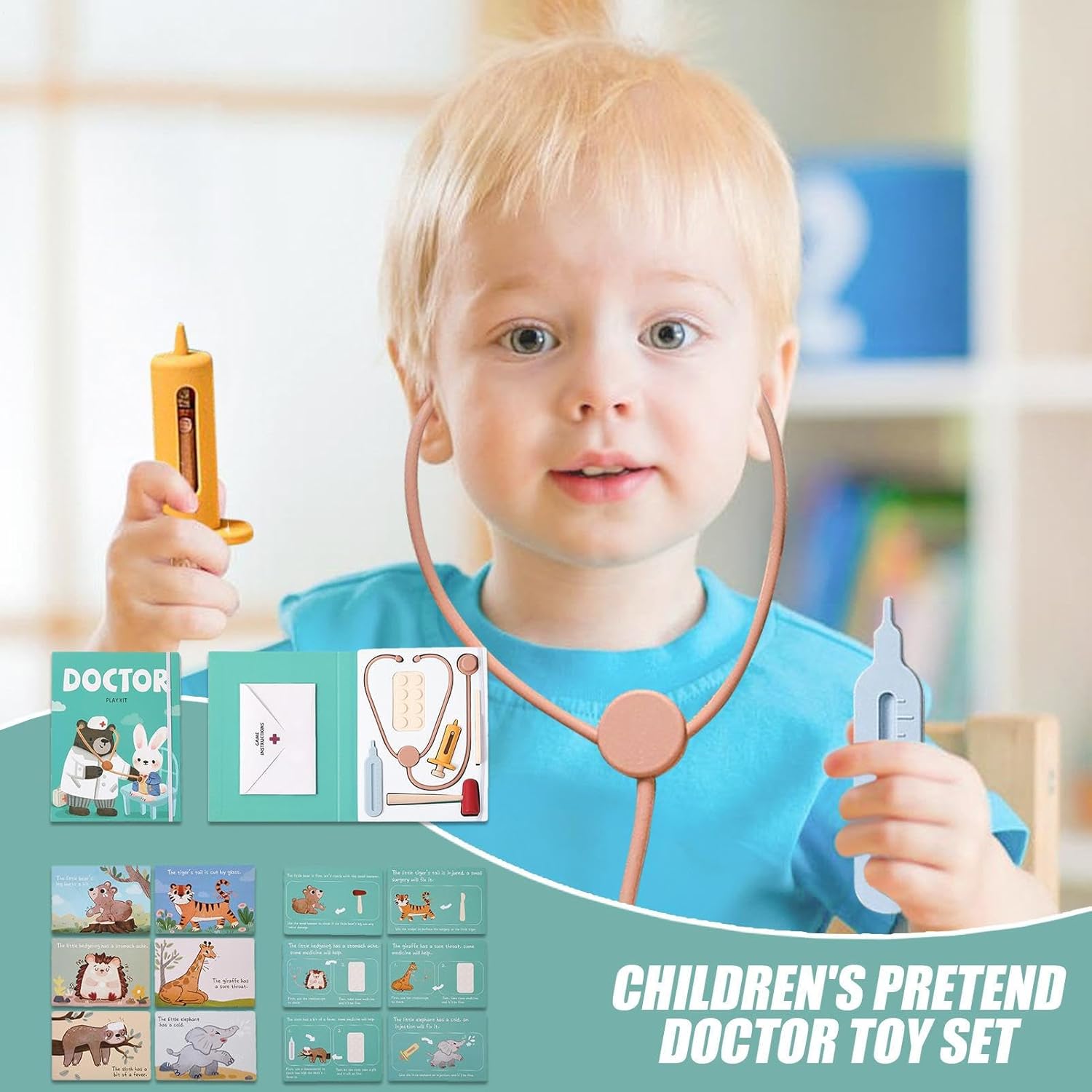 Interactive Role Play Fun: Designed for kids ages 3 and up, this set encourages imaginative play by allowing children to role-play as doctors, treating family members, or stuffed animals, promoting empathy, communication skills, and creative thinking Durable and Safe for : Made from , , each toy in this doctor play set is safe for to handle, ensuring long-lasting durability and a smooth play experience that can withstand active, imaginative use Educational Value for Kids: This pretend play set helps children develop fine motor skills, hand-eye coordination, and problem-solving abilities as they in interactive play, making it an ideal tool for early childhood development Perfect Gift for Little Doctors: The Kids Doctor Play Set is an for who enjoy role-playing and learning about the world around them, making it a fun, educational addition to any home, classroom, or daycare
