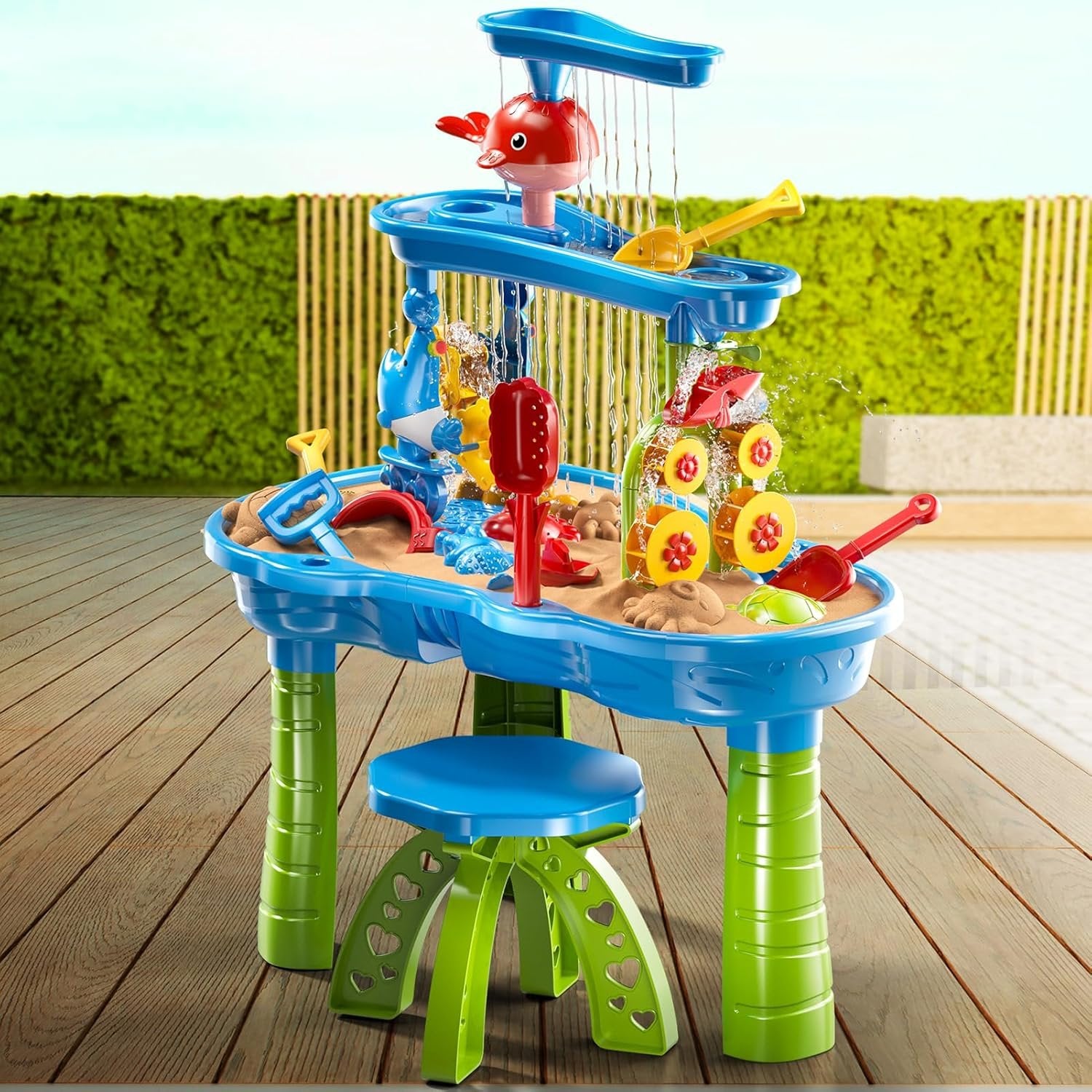 Kids Sand Water Table Toys for Toddlers, 3-Tier Outdoor Sand and Water Play Table Toys for Toddlers Kids, Kids Beach Toys Activity Sensory Play Table Beach Summer Outside Toy for Toddler Age 3-5