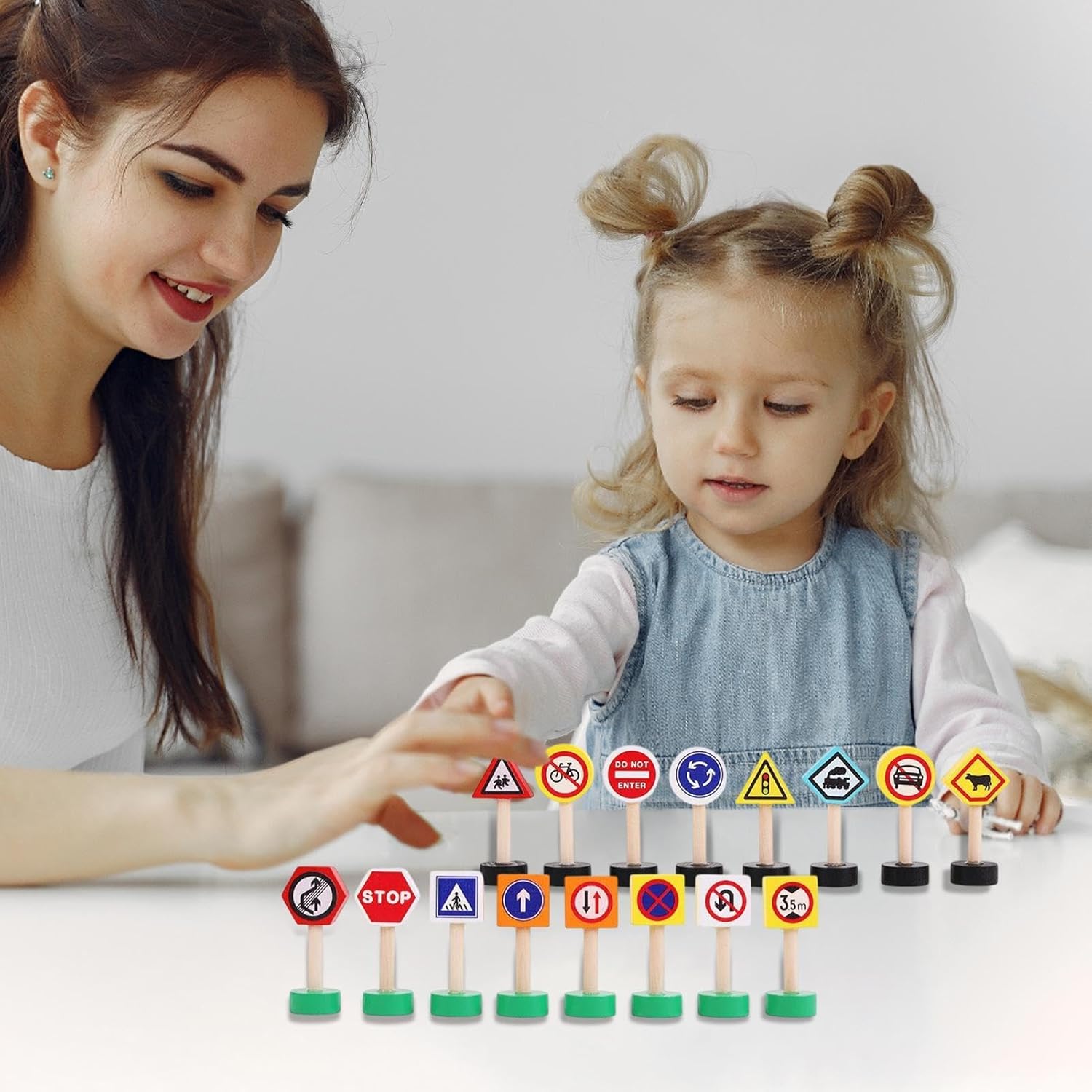 16-Piece Realistic Traffic Sign Set: Includes 16 street traffic signs, such as stop signs, speed limits, crosswalk signals, and more, providing a hands-on learning experience for children in preschool and early education. Wooden Construction: Made from wood, high-quality, these crosswalk signal blocks are sturdy, smooth, and safe for kids, ensuring long-lasting educational play in homes, classrooms, or daycare centers Perfect for Role-Playing & Toy: these street signs complement toy vehicles, , and city-building sets, allowing children to simulate real-life scenarios, enhancing fantasiative and cognitive skills. GREAT GIFT FOR Early Learning - Ideal for kids, and young learners, this traffic safety education toy is a perfect gift for birthdays, holidays, and school activities, helping kids develop awareness of road safety.