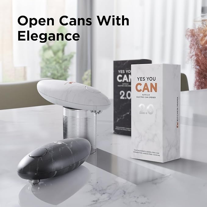 Kitchen Mama Auto 2.0 Electric Can Opener: Refined Blade Opens Almost Any Can - Automatic, Hands Free, Smooth Edge, Food-Safe, Battery Operated, YES YOU CAN (Marble White)