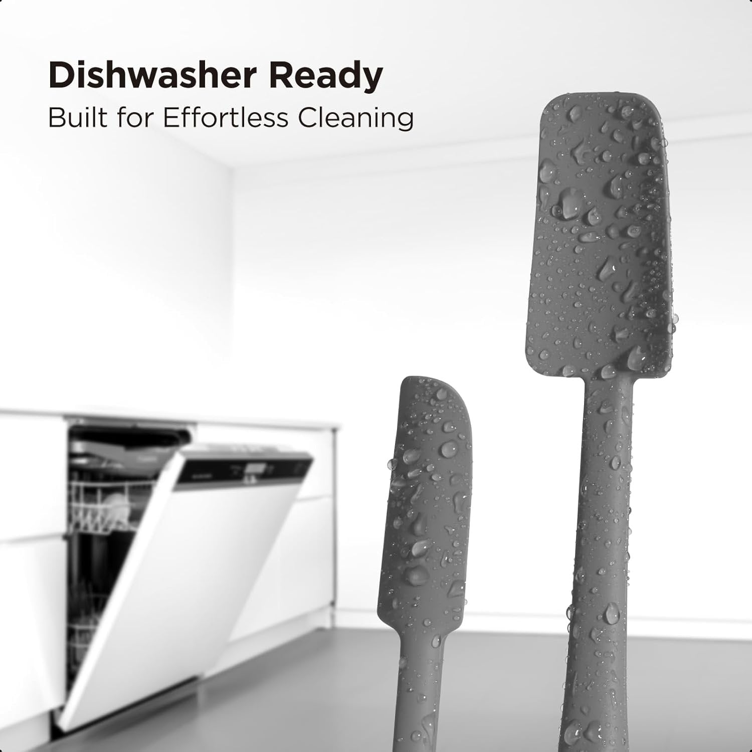 Kitchen Mama WaltzGrip Platinum Silicone Jar and Can Spatula Set: Heat-Resistant, Dishwasher Safe, Ergonomic Grip, Perfect for Mixing and Scraping, Nonstick Cookware (Metal Gray)