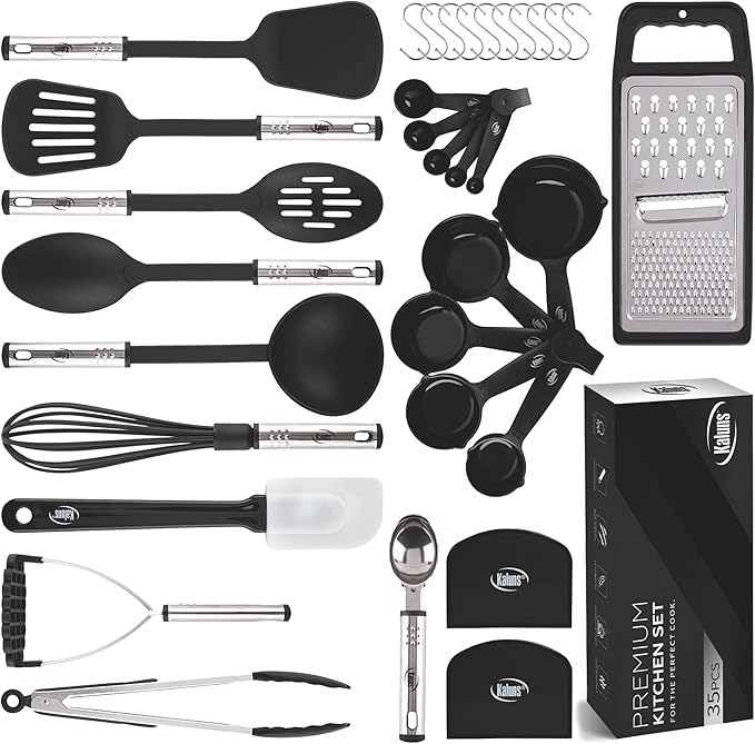 Kitchen Utensils Set 35 PCS Cooking Utensils Set, Nonstick and Heat Resistant Nylon Stainless Steel Silicone Spatula Set - Kitchen Gadgets Home Essentials Kitchen Accessories, Apartment Must Haves