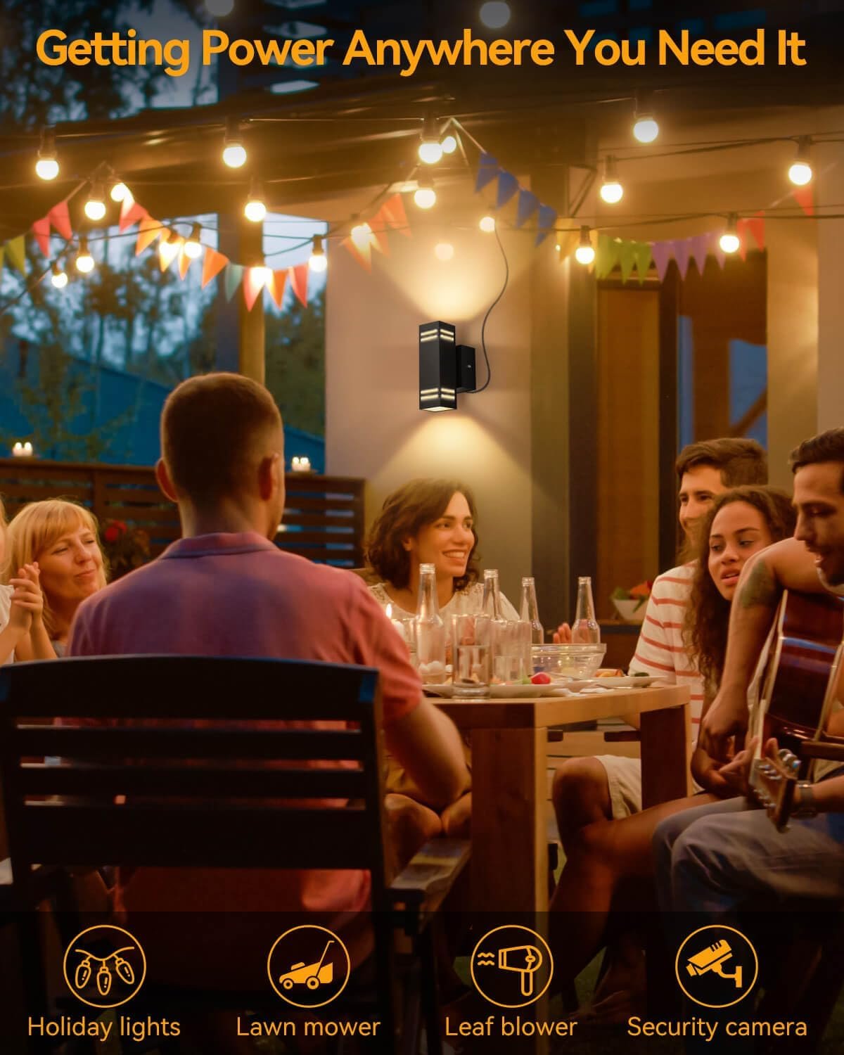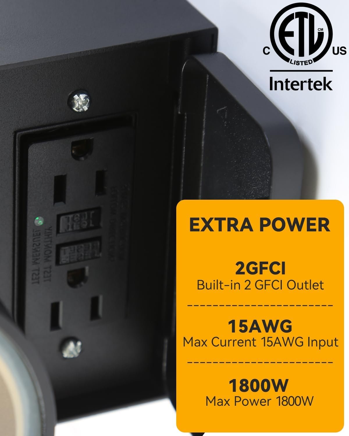 Built-in GFCI Outlet for Extra Convenience: This outdoor light with outlet features a weather-resistant GFCI outlet positioned downward, protecting it from rain and making it perfect for powering holiday lights, tools, or garden equipment. Max capacity: 15A/1800W. Light up and power up in one seamless step! Automatic Dusk to Dawn Sensor: Equipped with a responsive dusk to dawn sensor, this outdoor light fixture turns on automatically at night and off during the day, providing hassle-free illumination. Enjoy a well-lit entryway or patio without having to worry about switches or timers. Modern Design with E26 Base: This outdoor wall sconce feature a sleek matte black cylindrical body, emit bright up and down lighting, it enhances visibility while adds contemporary elegance to any space. Its E26 socket is compatible with various bulbs, such as LED, flame, RGB, CFL, incandescent, allowing you to customize the ambiance for your house.(Bulb not included) Built to Last in All Weather Conditions: Made from rustproof aluminum and toughened glass, this porch light with outlet withstands rain, snow, and extreme temperatures. Its anti-corrosion design ensures it retains its stylish look and brightness season after season, providing reliable, long-lasting performance. Perfect for Multiple Outdoor Uses: The minimalistic design suits any outdoor decor, from traditional to modern homes. Ideal for illuminating porch, garage, and patio, while the built-in outlet offers handy power access for party lights, lawn mowers, or BBQ equipment, enhancing outdoor convenience.