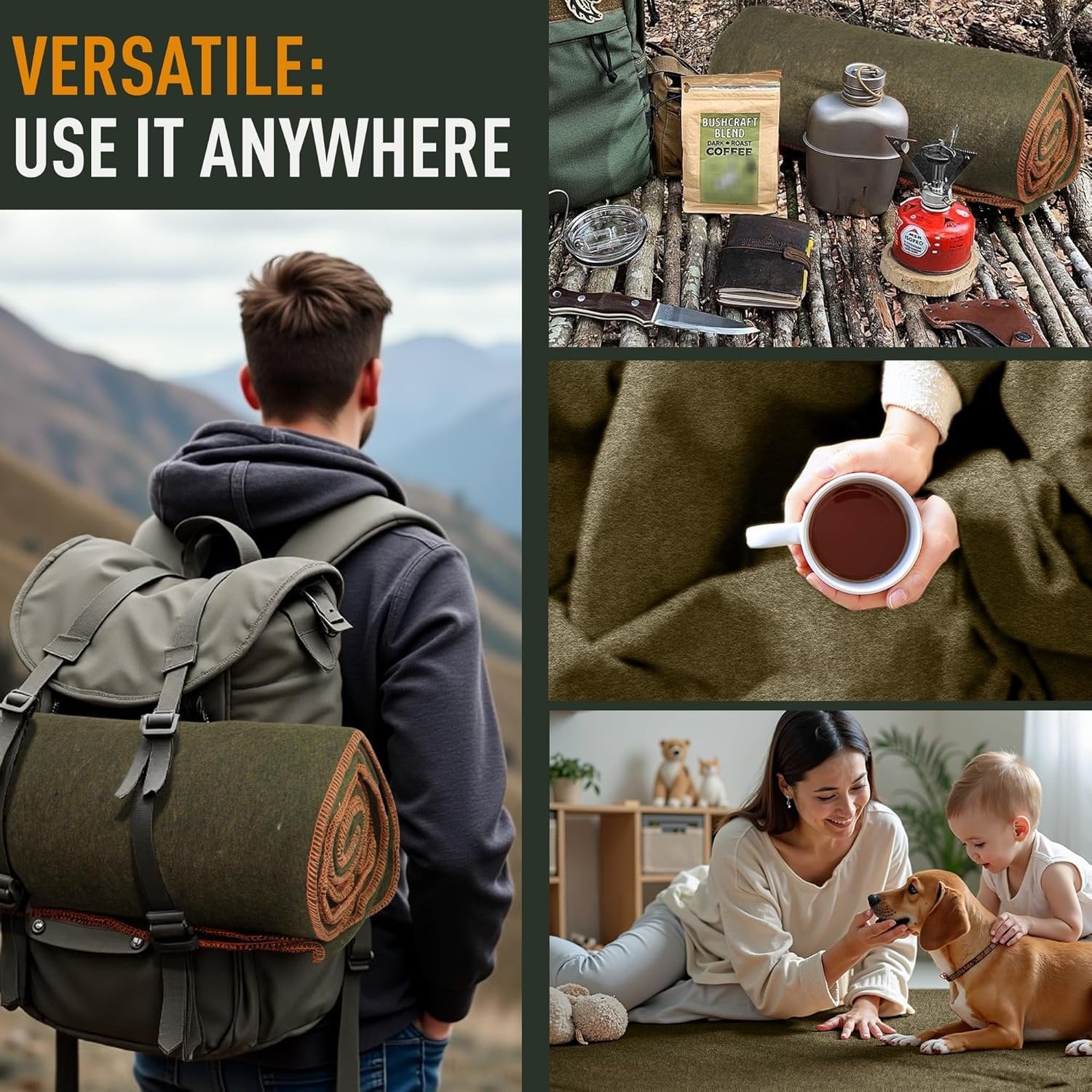 PREMIUM QUALITY THICK 80% WOOL BLANKET: This heavy-duty military blanket is made of 80% wool and 20% man-made fibers – the optimal blend of comfort, quality and durability. A foolproof choice for all-year round use, indoors, outdoors and beyond. EMERGENCY OUTDOOR BLANKET FOR ENDLESS USES: Hit the road with the best tactical throw blanket by your side to stay warm and cozy whenever and wherever needed. Perfect for Camping, Hiking, Hunting Trips, Picnics, Daily Excursions, Military Uses, Overnight Car Stays, Stadium Events & Festivals, Beach Trips, Skip Trips, Traveling and so much more. FIRE-RETARDANT BLANKET FOR YOUR UTMOST SAFETY: This fireproof blanket is thoroughly designed to slow down and even stop the spread or intensity of any fire to offer an extra layer of safety and protection during any emergency. A must-have outdoor essential to use near campfires, BBQs, beach bonfires or any other festive event. HEAVY-DUTY QUALITY | 100% FREE OF CHEMICALS: Loom-woven and hemmed on all sides with contrast lock stitching, the Teco Outdoor blankets are thoroughly made to be wear- and tear-resistant to stay by your side for a lifetime. Never treated with any additional flame-retardant chemicals or any other potentially harmful substance, our wool blend blankets are 100% safe for the whole family to use. PLENTY OF ROOM FOR ALL - Measuring 64" x 88", this large blanket will keep you and a friend cozy while camping,