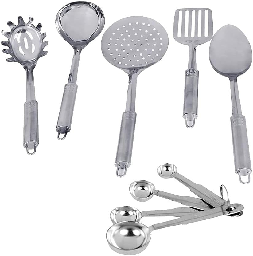 Kosma 9 Piece Stainless Steel Kitchen Utensil Set, 5 Kitchen Gadgets and 4 Measuring Spoons | Kitchen Utensil Set