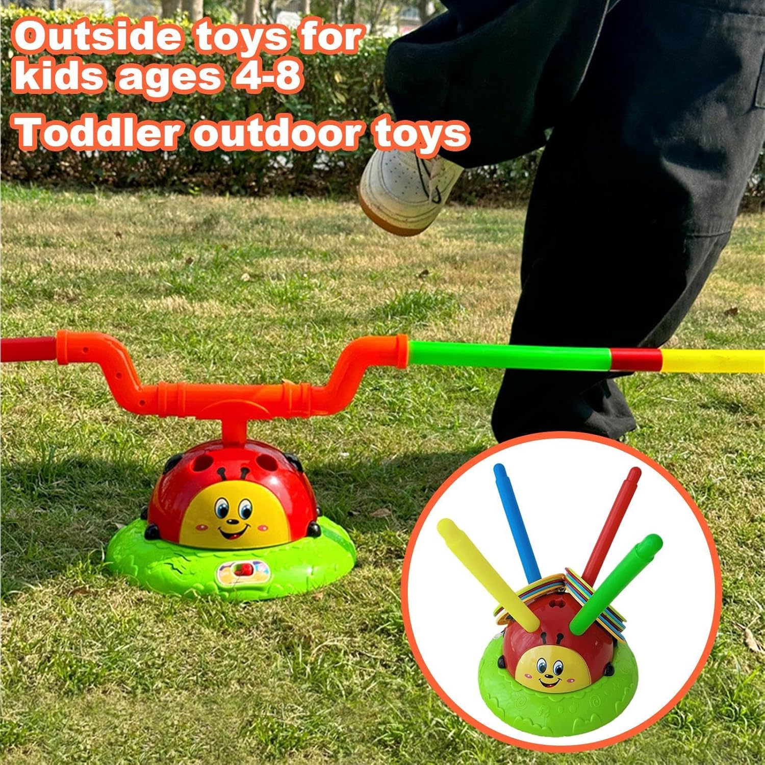 Ladybug Jump and Toss Toy, Musical Kids Game, Toddler Fun Equipment, Indoor Outdoor Play, Summer for Boys and Girls, 2-in-1 Jump and Feature, Sturdy and Interactive, Parties
