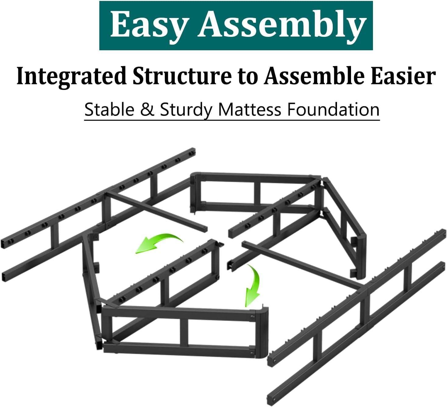 Safety Design: The king bed frame features rounded corners and smooth edges to prevent toe bumps and wall scratches. Low Profile: This 5-inch bed frame king size can be placed directly on the floor with a high mattress for a cozy and comfortable sleep. You can also use it with a box spring cover you purchased as a high box spring, and then combine it with a bed frame to provide excellent support for your mattress. Easy Assembly: With our simple assembly design and clear instructions, you can assemble your king platform bed frame quickly. Sturdy Quality: The metal bed frame king features two additional sturdy steel slats for unparalleled stability. Engineered to be robust and noise-free, it guarantees a peaceful night's sleep. No Box Spring Required: The king size platform bed frame with heavy duty metal slats support and prolong the lifespan of your latex, memory foam, or innerspring mattress without requiring a box spring.