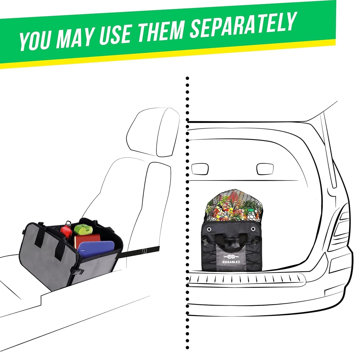 Large Car Trunk Organizer - Trunk Storage - Modular Detachable Configurable Collapsible - for SUV Minivan Truck Sedan Van - 3 Compartment XL, Two Shades of Gray