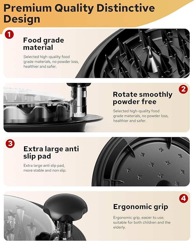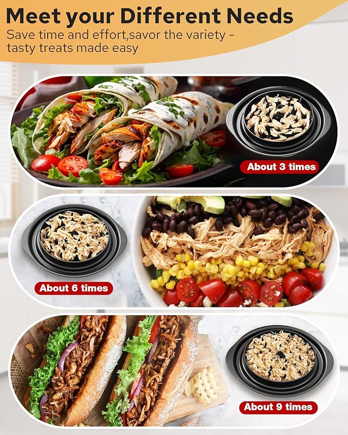- ✅【Save Time and Energy Super Non-Slip】Special double handle top cover and strengthen the non-slip tray design, at the same time, the handle is very ergonomic, the force is uniform and the operation is more labor-saving, the actual test can be 3 seconds to complete the processing of 1 kg of chicken, the efficiency of the ordinary shredder 3 times, goodbye to the bare hands tearing the meat of the effort and embarrassment, the real cooking must-have