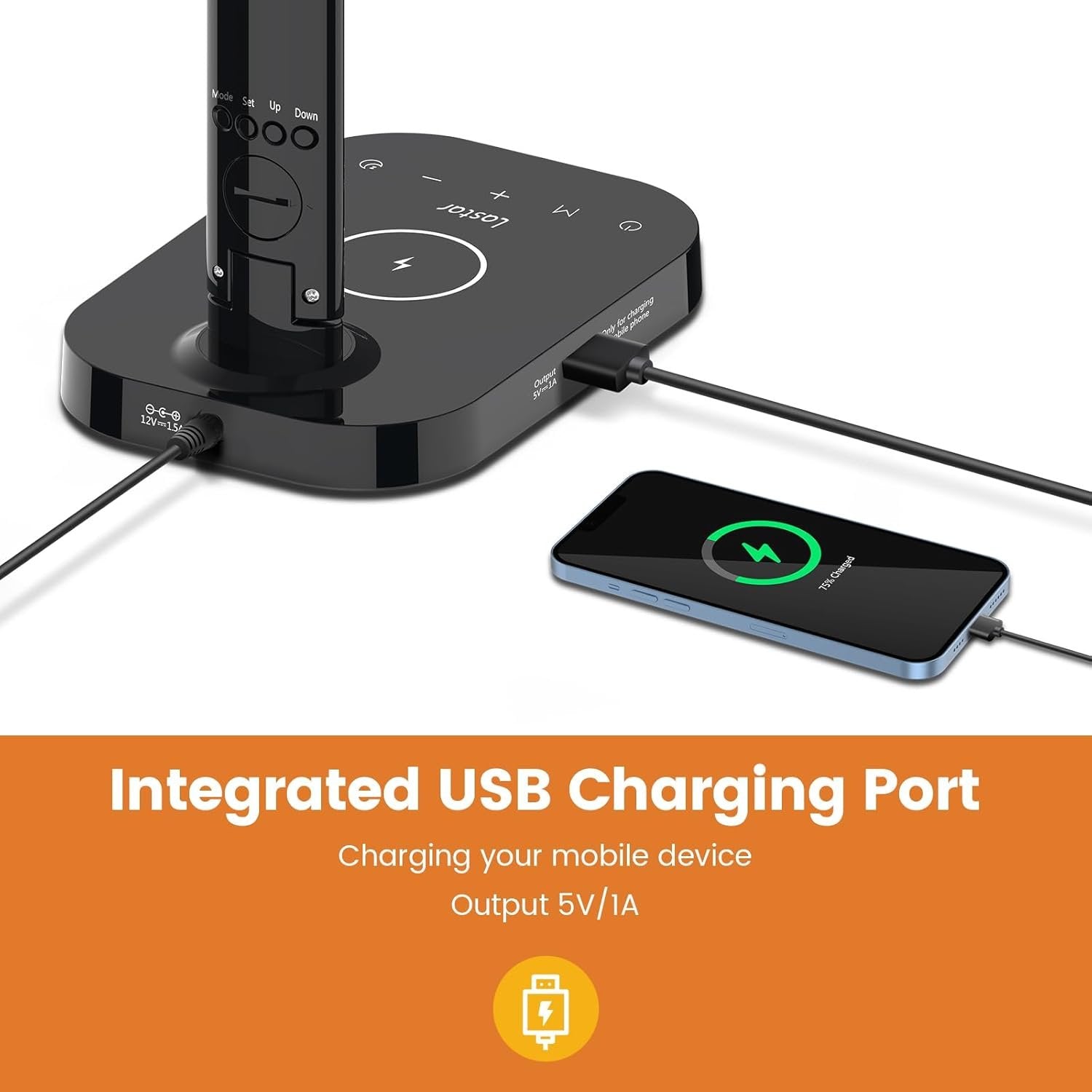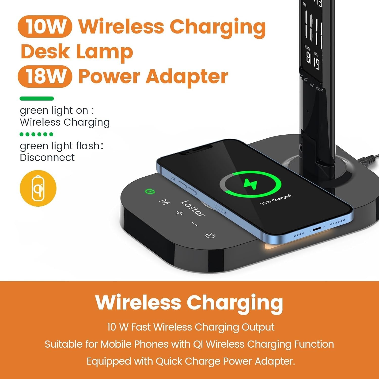 LASTAR Desk Lamp,Smart 18W Wireless Rechargeable Led Table Lamp, USB Charging, 5 Brightness Levels, 5 Colour Temperatures, Perpetual Calendar, Alarm Clock and Memory Function Desk Lamp for Home Office