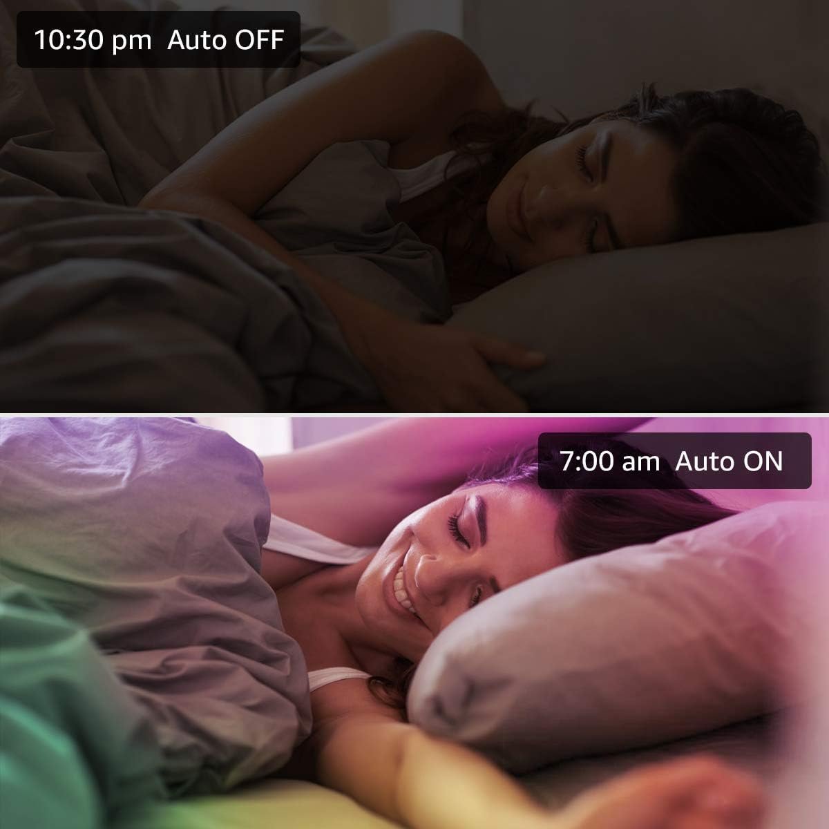 IP65 Waterproof: This rgb led strip lightsadopted IP65 material, can be suit any situation, outdoor or indoor, bars, bedrooms, under canbinet, swimming pool or parties, led strip lighting helps create perfect ambient light and excellent visual experience. 4 Control Ways: LE smart LED lights can be adjust brigheness turn on/off or changing the color by Voice/APP/Remote/In-line, compatible with Alexa and google assistant. (Download an "Smart Life" APP through the APP store or google play). Set Timer & Assistant: Easily turn off your home tv light strip that campatible with Alexa and Google home when you forget it or turn on it when you are not at home by the APP. Besides, it can also turn on/off the rgb light strip or trigger a programmed scene at your preset time. Add schedule, this led light strip will be your good assistant. Versatile Colors & Dimmable: Accompanying with more than 16 millions of colors and dimmable brightness, you can change the colors and the brightness of waterproof led light strip just as you like. The brightness can be adjusted from 1% to 100%. Perfect for Christmas decorations, bedroom, TV background and other festival decorations. Easy to Set up and Use: An strong double-sided adhesive makes this rgb strip stuck to the surface firmly. By controlling a smart phone, operate the whole led strip easily. Also, this flexible and cuttable led strip lights for bedroom can become your desired length and shapes if you are interested in DIY. Please note that the Operating temperature of the outdoor strip lights are above 0°C, you may use them indoor during cold winter.