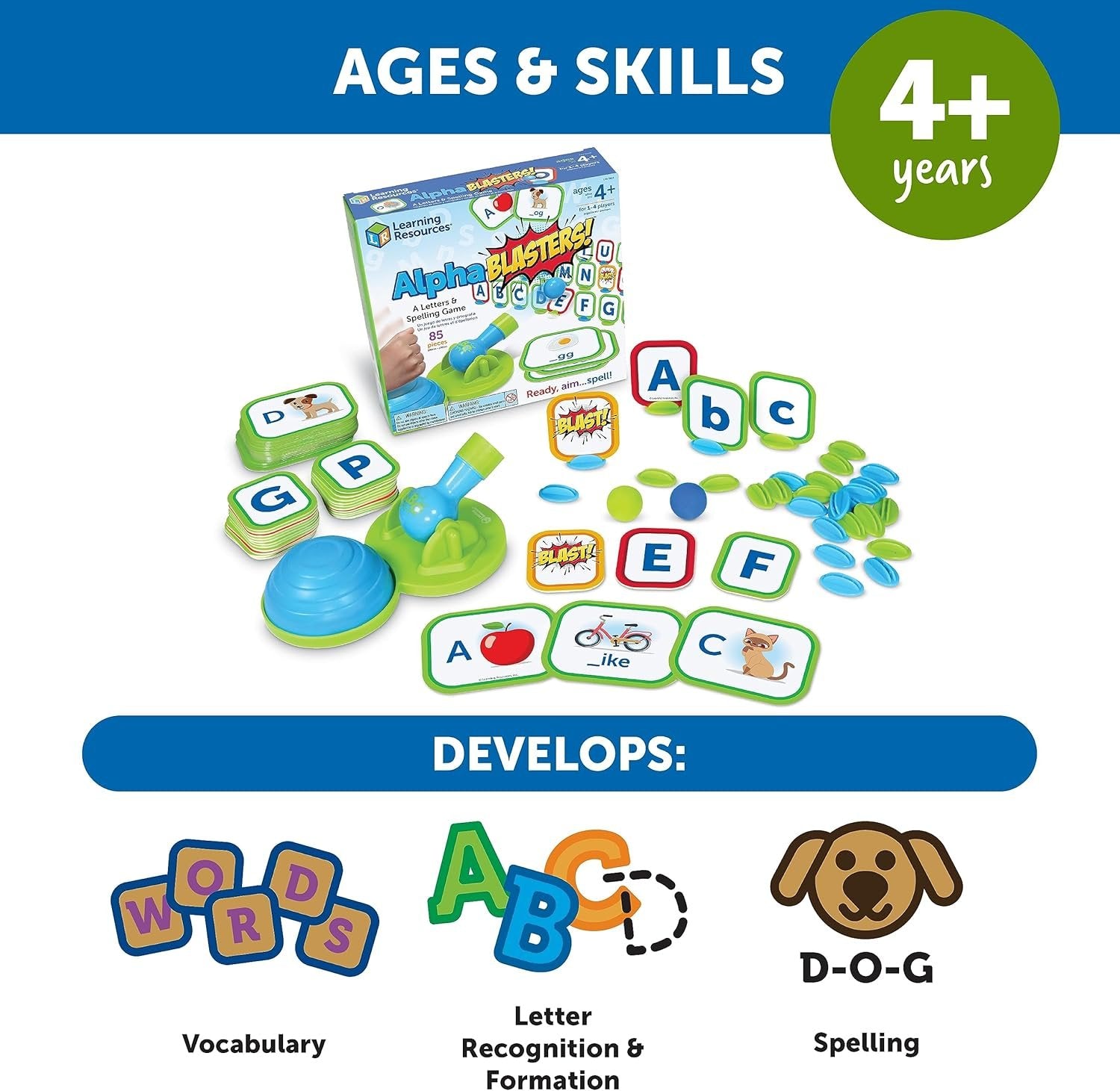 Learning Resources Alphablasters! Letter & Spelling Game - 85 Pieces, Ages 4+ Toddler Preschool Learning, Educational Indoor Games, Preschool Alphabet, Toddler Brain Games