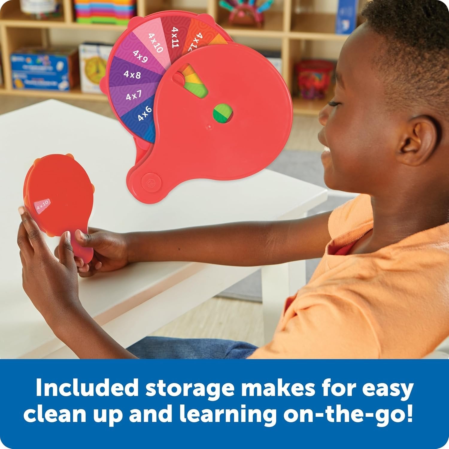 Spin & Learn: Kids build new multiplication skills every time they pop in a number flash card, spin to an equation, and flip to check the answer! Build School-Ready Math Skills: The quiz wheel’s 13 multiplication cards reinforce times tables for facts 0-12—turn learning into a fun math game! Built-In Storage: Number flash cards store on the back of the wheel for easy cleanup and on-the-go learning! Ready for Home or Classroom: Made from durable plastic and packed with learning activities, this math fidget toy makes a great addition to homes or classrooms! Trusted By Teachers: Designed with educators in mind since 1984, our toys help teachers and occupational therapists keep students bright and engaged! Give the Gift of Learning: Whether you’re shopping for Christmas stocking stuffers, eggcellent Easter basket toys, or back-to-school favorites, award-winning educational toys from Learning Resources are the best way to give the gift of learning!