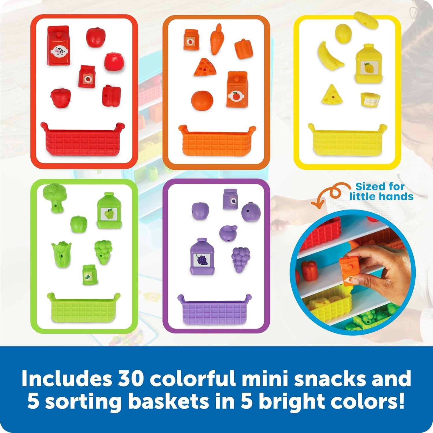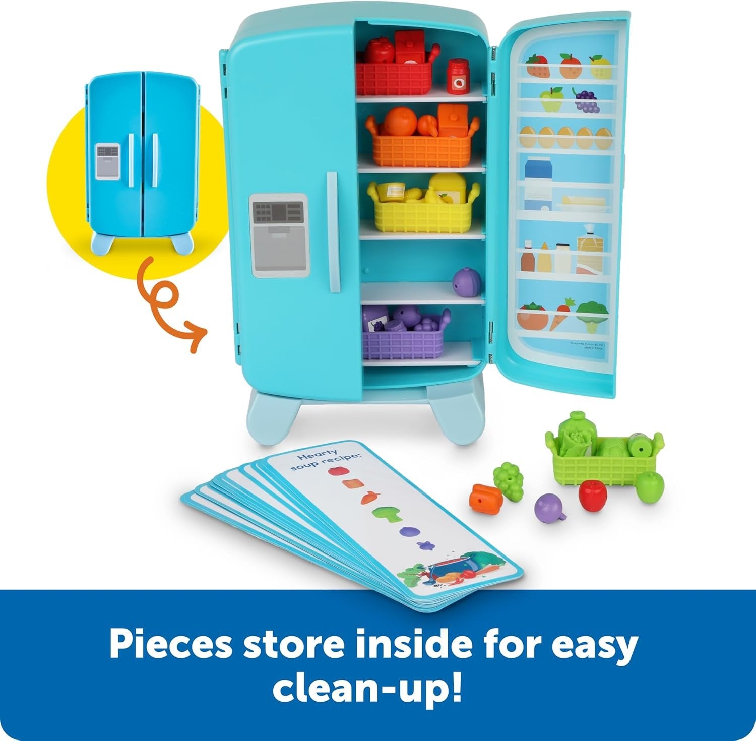 Mini Fridge, Big Skills: Kids master counting, sorting, and patterning as they explore this toddler learning toy’s 30 colorful mini snacks and 15 double-sided activity cards! Fine Motor Fun: Sized for little hands, this learning and education toy’s snack counters help kids build coordination, precision, and other fine motor skills! Easy Cleanup: When all the snacks have been sorted for the day, this toddler toy’s pieces store back inside the mini fridge until next time! Ages and Skills: Specially designed with little ones in mind, this educational toy set helps kids as young as 3 build essential early math and sorting skills! Give the Gift of Learning: Whether you’re shopping for holidays, birthdays, or just because, award-winning educational toys from Learning Resources help you discover new learning fun every time you give a gift!