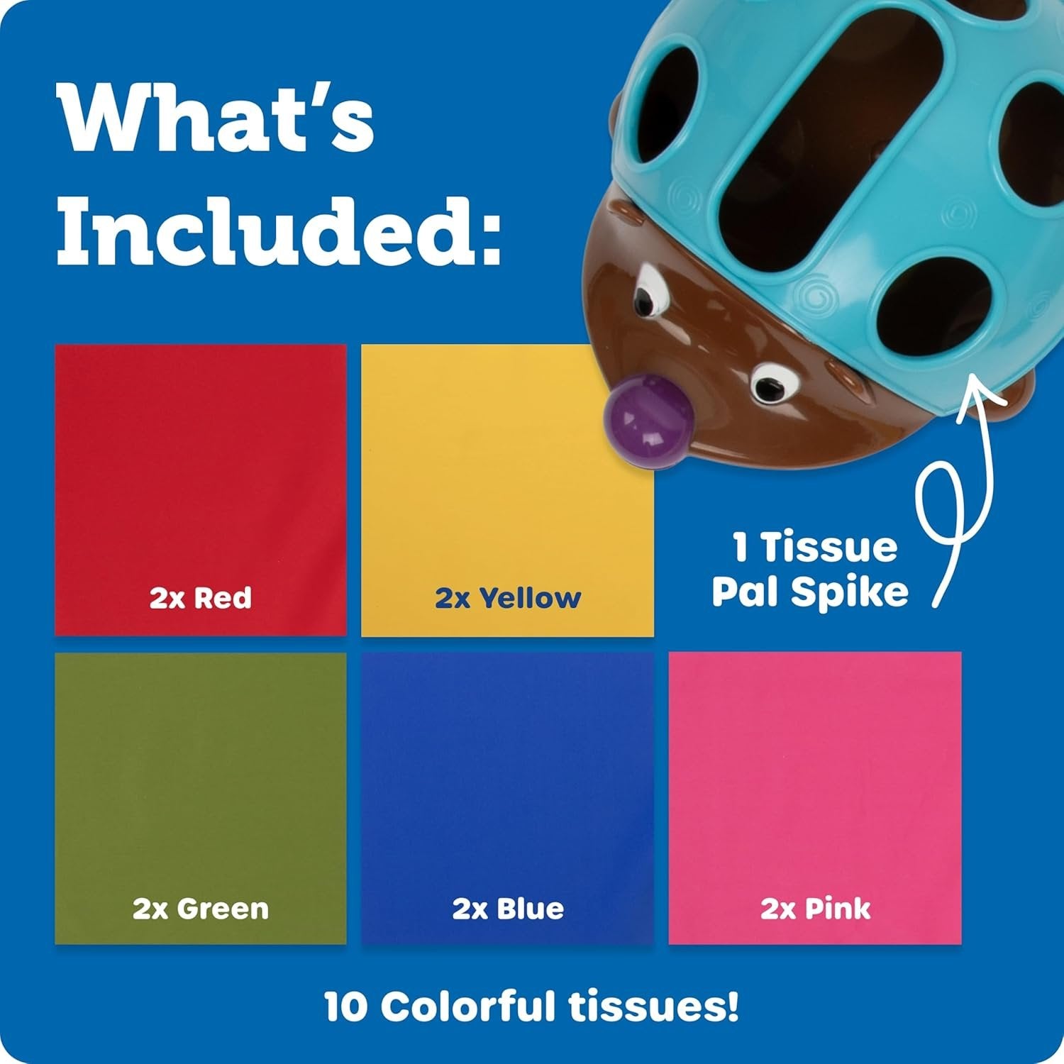 Fine Motor Tissue Fun: Kids pinch, pull, and stuff their way to new fine motor and sensory skills when they play with Spike’s preschool learning activities! Colorful, Washable Tissues: In 5 vibrant colors, this toddler learning toy’s 10 washable fabric tissues are ready for sorting and sensory play! Tissue Time, Every Time: Spike's sturdy shell and stable base make it easy to pinch and pull again and again—tissues even store inside for easy cleanup! Ages and Stages: Specially designed with little ones in mind, this educational toy set help kids as young as 3 build essential fine motor, color, and sensory skills! Give the Gift of Learning: Whether you’re shopping for holidays, birthdays, or just because, award-winning educational toys from Learning Resources help you discover new learning fun every time you give a gift!