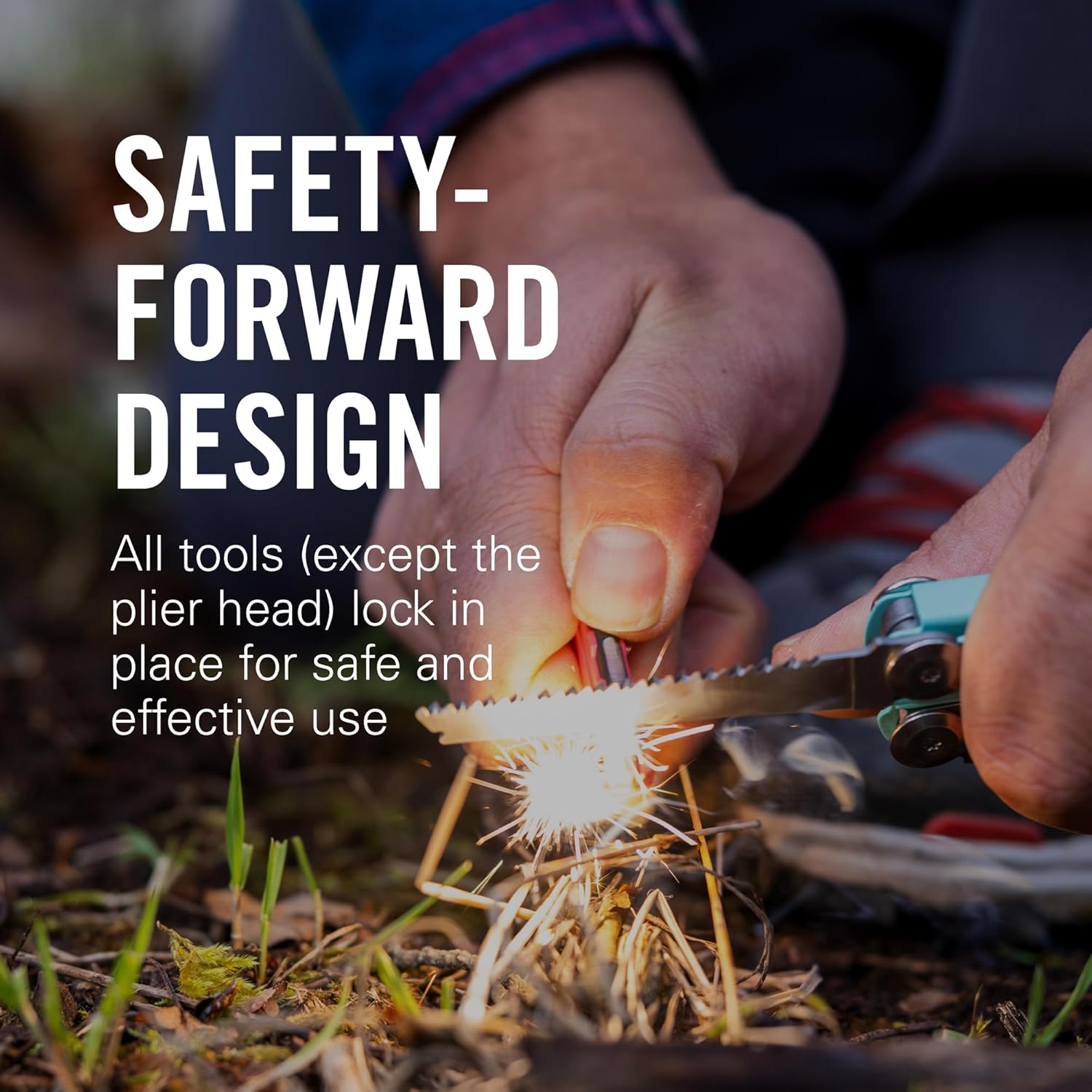 Leatherman Signal® Survival Multitool with Hammer, Whistle & 19 Tools - 4.5" Stainless Lockable Multitool with Nylon Sheath - Aqua & Silver - Ideal for Outdoor Adventures, Camping & EDC
