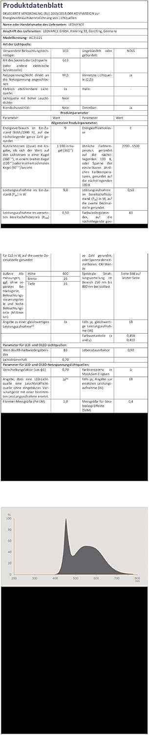 Brand-Ledvance Light type-LED Special feature-Energy Efficient, Dimmable Wattage-9 SMART+ tubes with WiFi technology. Product features: Controllable via LEDVANCE SMART+ WiFi app (with at least Androidï¸ 4.4 or iOS 9.0). Control via Google Assistant or Alexa possible. Network protocol: WiFi Lifespan: up to 50,000 h. Light colour adjustable via Tunable White: Warm white to cool white (2,700 - 6,500 K). Product advantages: wireless control via app. Easy to install and use. Contains no mercury. Applications: General lighting. Living spaces. Commercial (hotels, bars, boutiques, etc.). Outdoor use only. Control via LEDVANCE SMART + app (from Android 6.0), Samsung SmartThings and HomeConnect Plus, easy control via Google Assistant or Amazon Alexa via voice control possible Extremely long service life up to 50,000 hours and up to 200,000 switching cycles, versatile in offices, living rooms, garages, catering, etc. Instant full light, no warm-up time. Easy replacement of conventional T8 EM tubes with KVG, outdoor applications only in suitable luminaires Lower heat generation (compared to the standard reference product). Very energy efficient with only 9 W rated power and an impressive 1100 lumens light intensity Control via LEDVANCE SMART + app (from Android 6.0), Samsung SmartThings and HomeConnect Plus, control easily via Google Assistant or Amazon Alexa via voice control