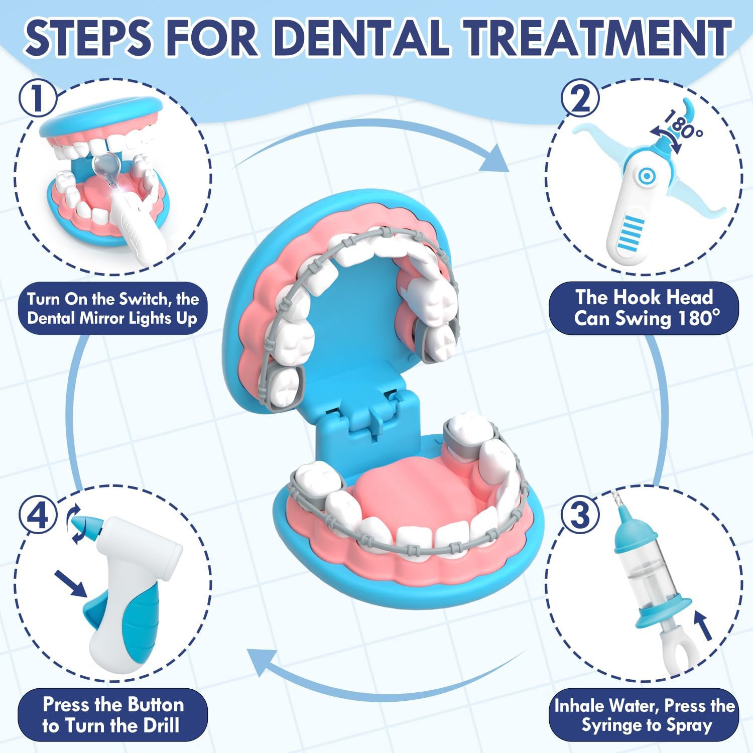 Lehoo Castle Dentist Play Set, Kids Doctor Set, Toy Medical Kits 31 PCS, Pretend Dentist Kit Playset Kids with Doctor Costume Doctor Bag Dental Models, Role Play Set for 3 4 5 Year Boys Girls