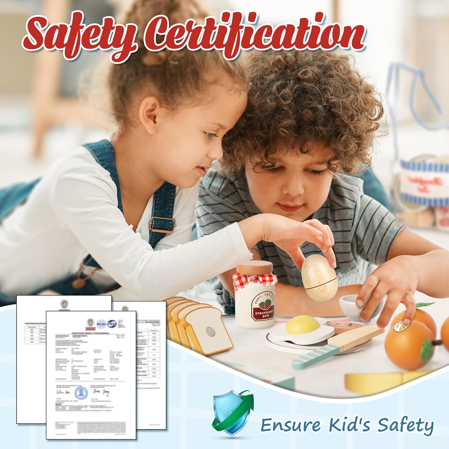Lehoo Castle Play Food, Pretend Wooden Role Play Food Set, Play Kitchen Toy, Toddler Toys Cutting Fruit Breakfast, Kitchen Accessories Cutting Food Toys for Kids Ages 3+