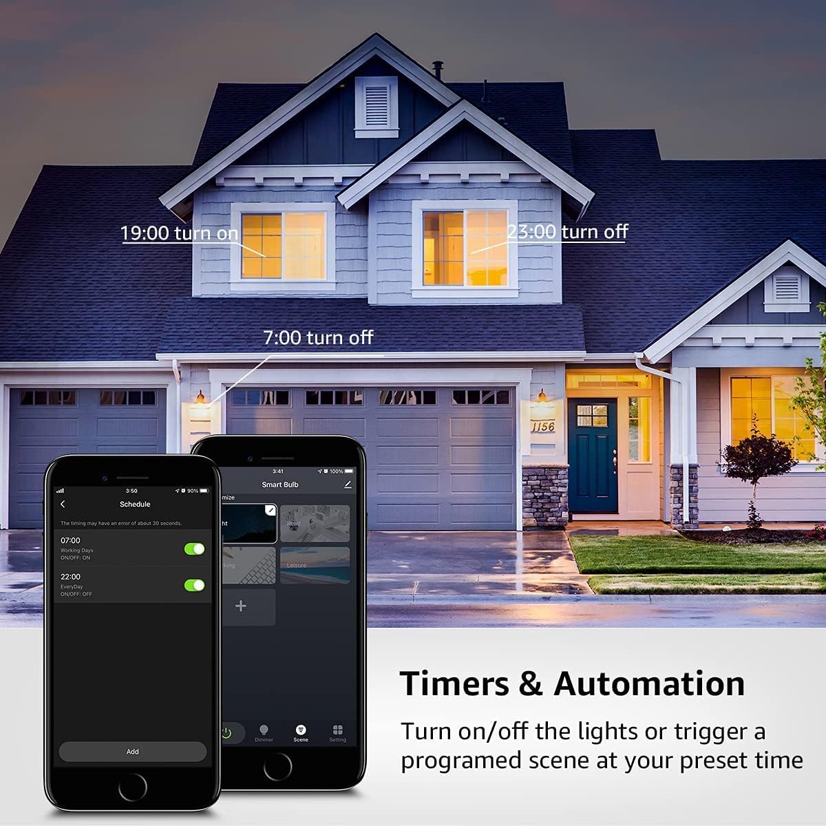 VOICE CONTROL: Works with Alexa (including Echo, Echo Dot) and Google Home, allows you to control the lights hands free with the only voice command. ENERGY SAVING: This 9W LED bulb provides 806lumen comfortable warm white light (2700K), equivalent to 60W halogen lamp, and can save 85% energy. TIMER FUNCTION: Schedule the bulbs to be able to turn on or off automatically at the set time as you want (for example, the light is on when you come home in the evening, it is off when you are not at home). EASY TO USE INSTALL:The E27 smart bulb (ø60 110mm) can be easily inserted into the E27 lamp holder, you can turn it on and off via APP after connecting to 2.4GHz wifi router, no hub required.