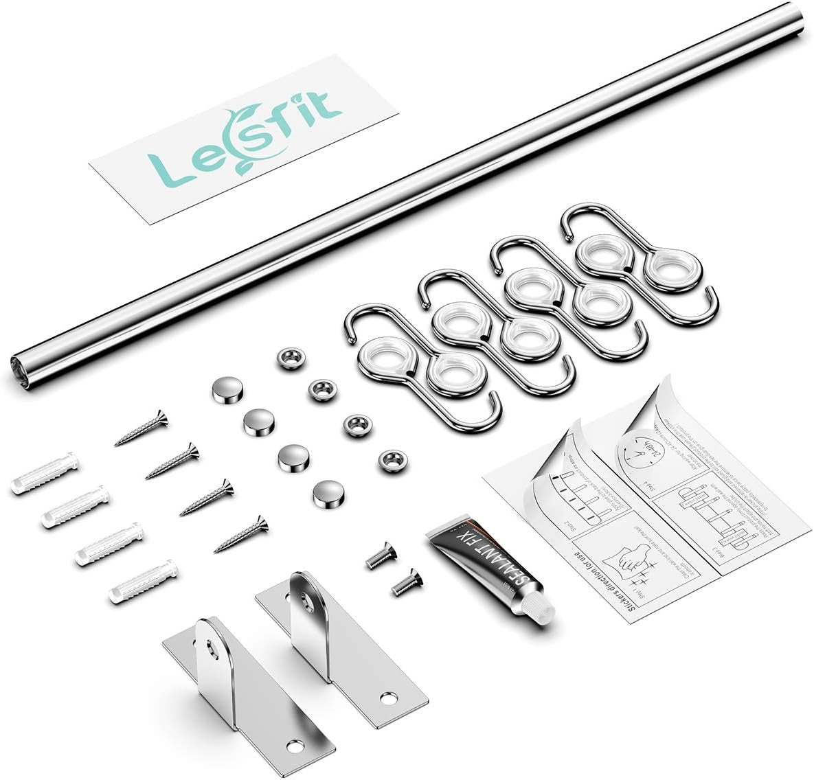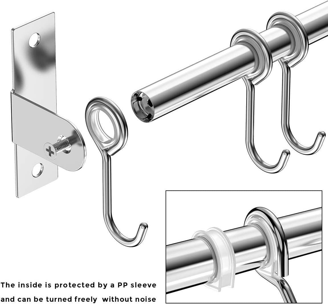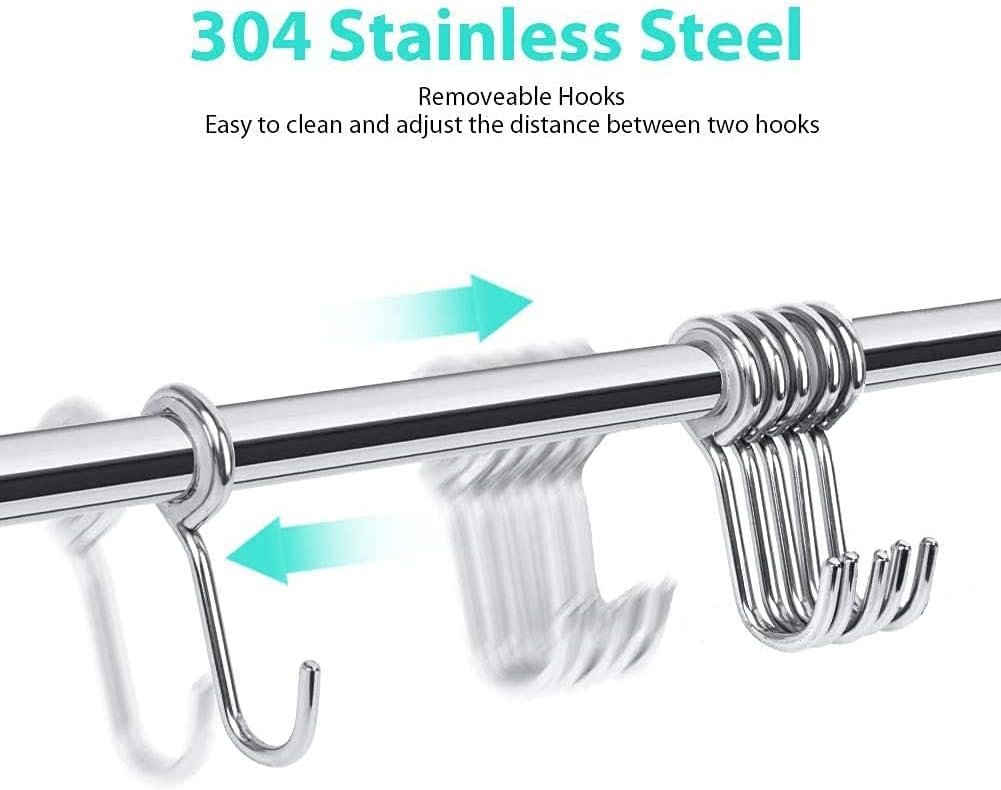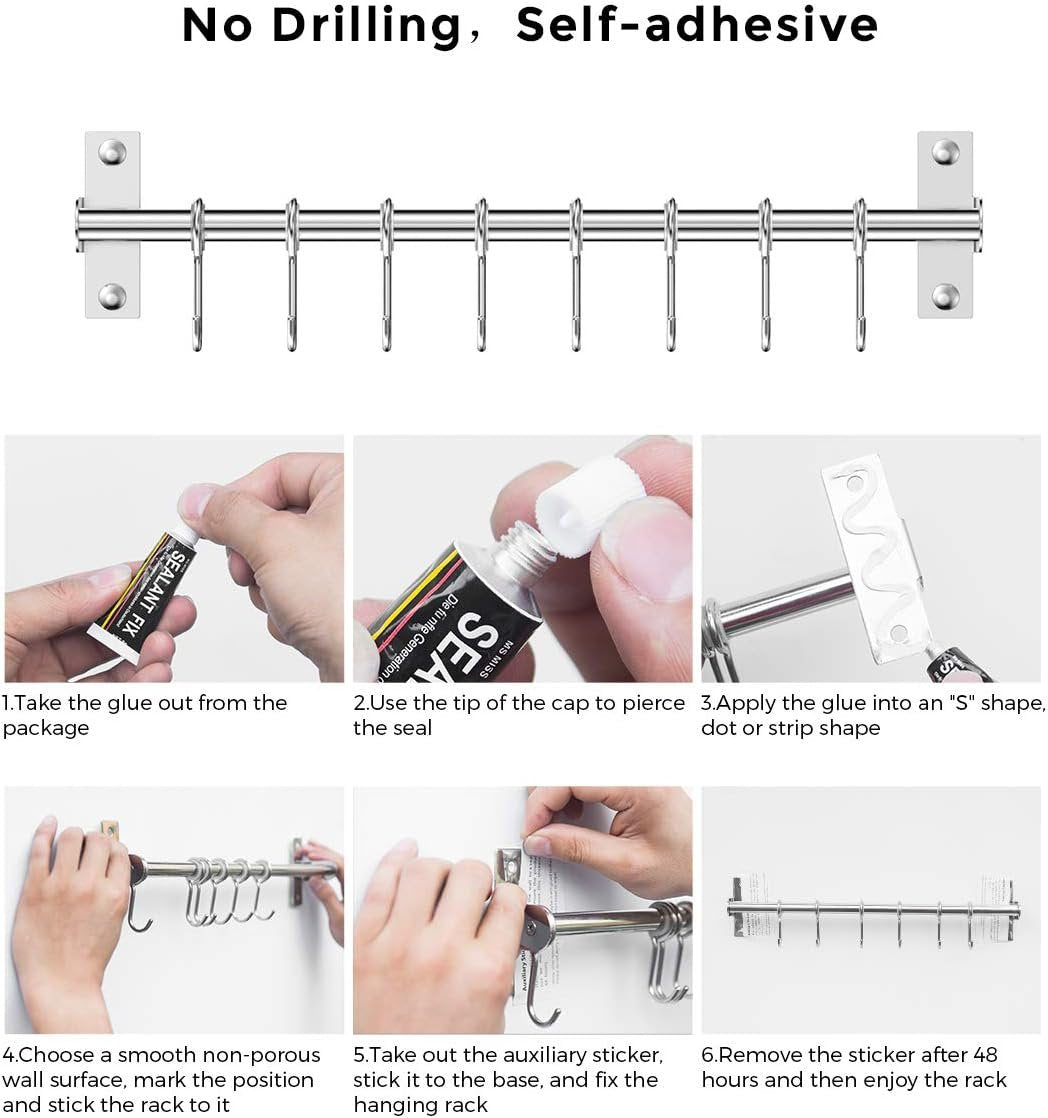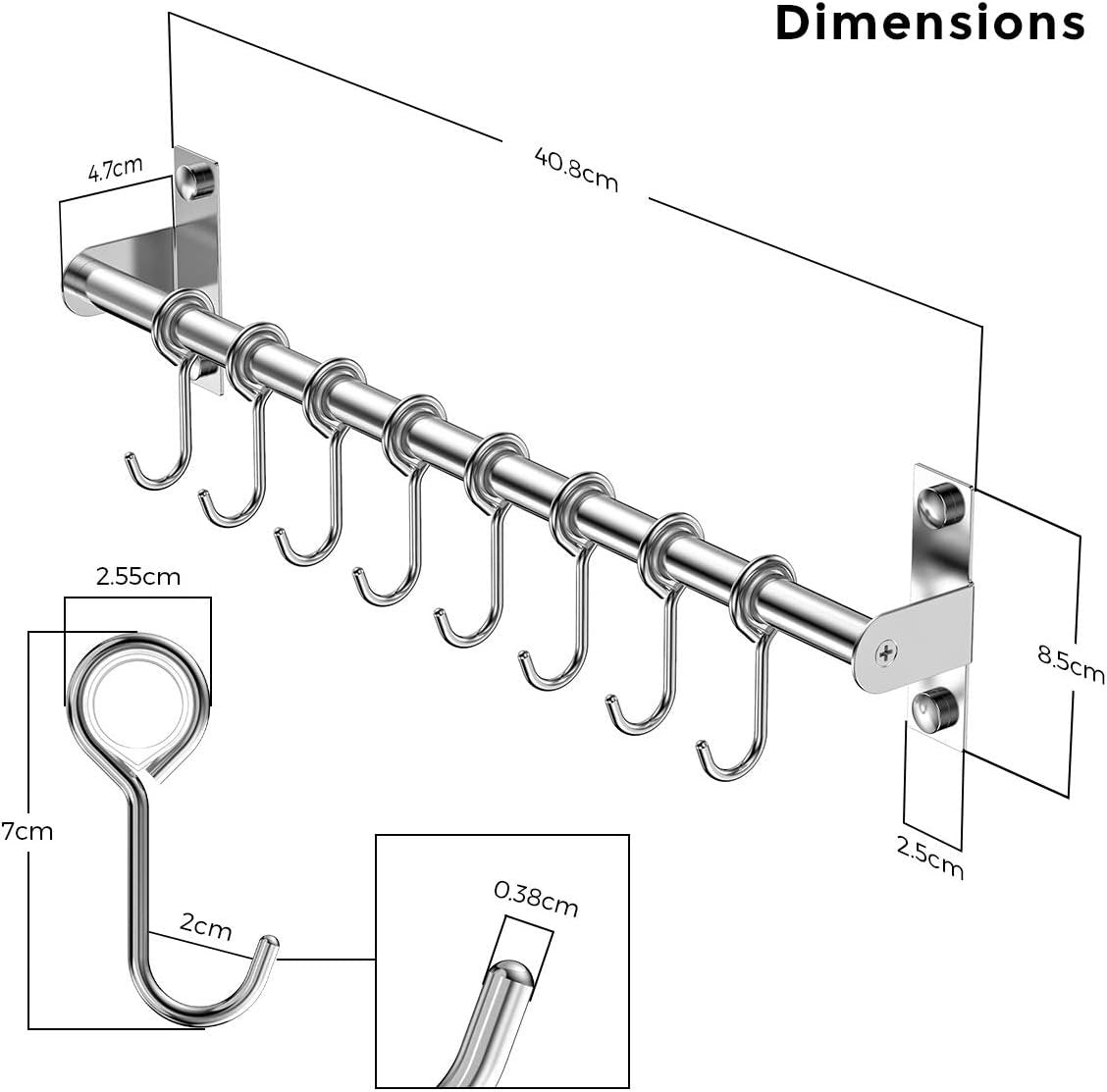 Lesfit Stainless Steel Kitchen Utensil Holder with 8 Hooks, Kitchen Utensil Bar Kitchen Knife Holder No Holes Needed for Bathroom Gadgets, Pans, Cups (Silver)