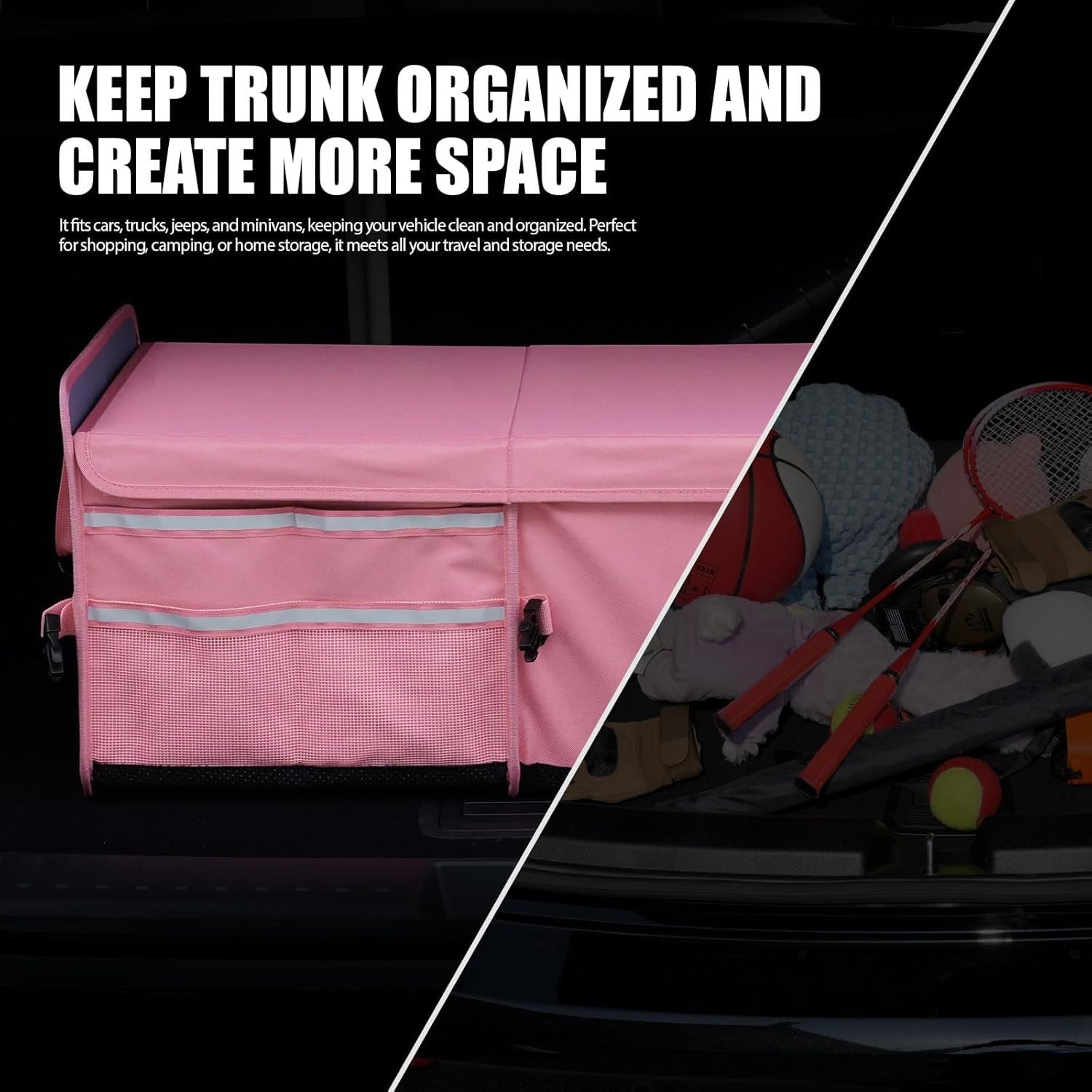 LIBZAKI Car Trunk Storage Organizer, Multi Compartment Collapsible Trunk Storage Box for Car Truck SUV-Pink
