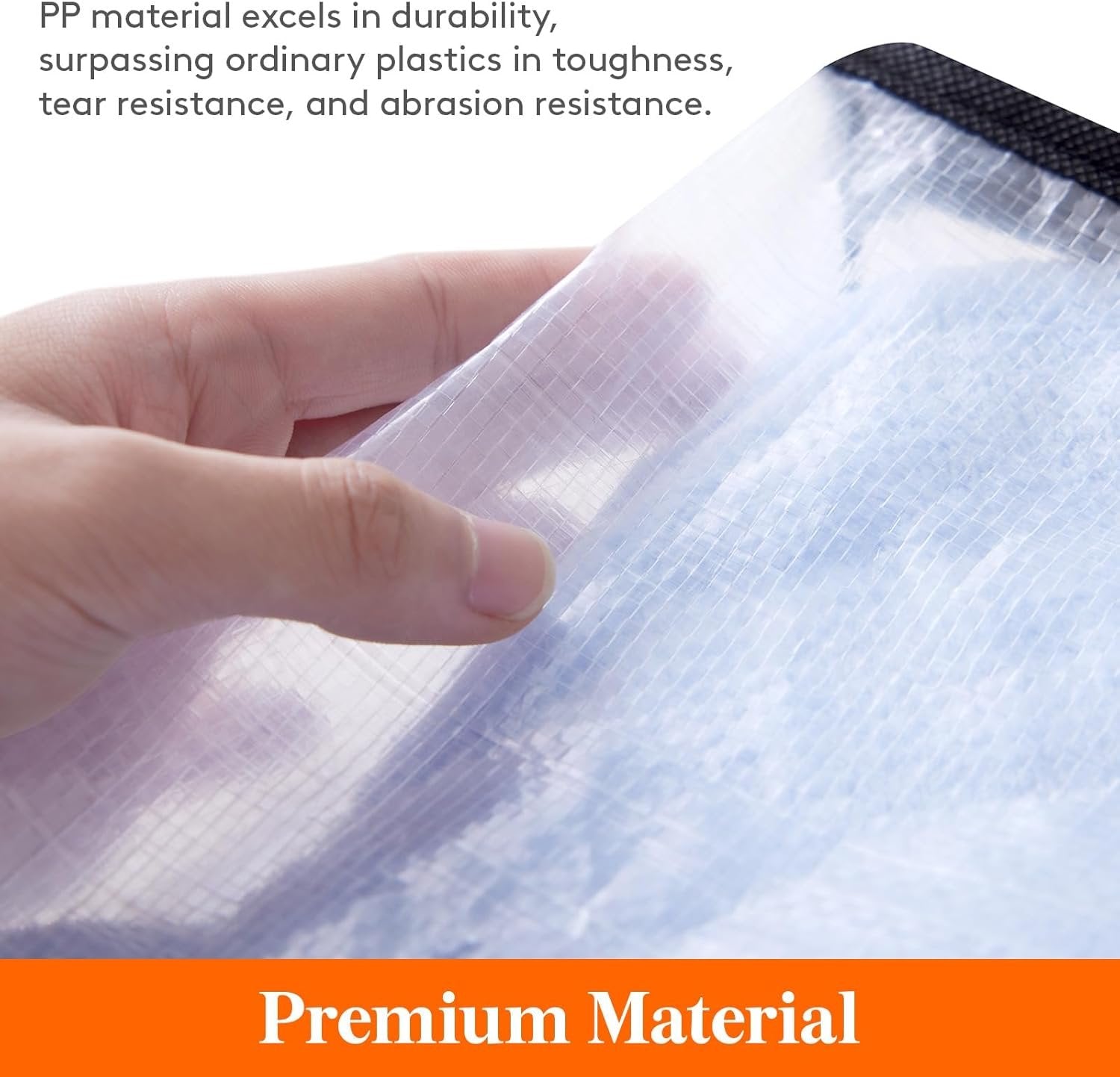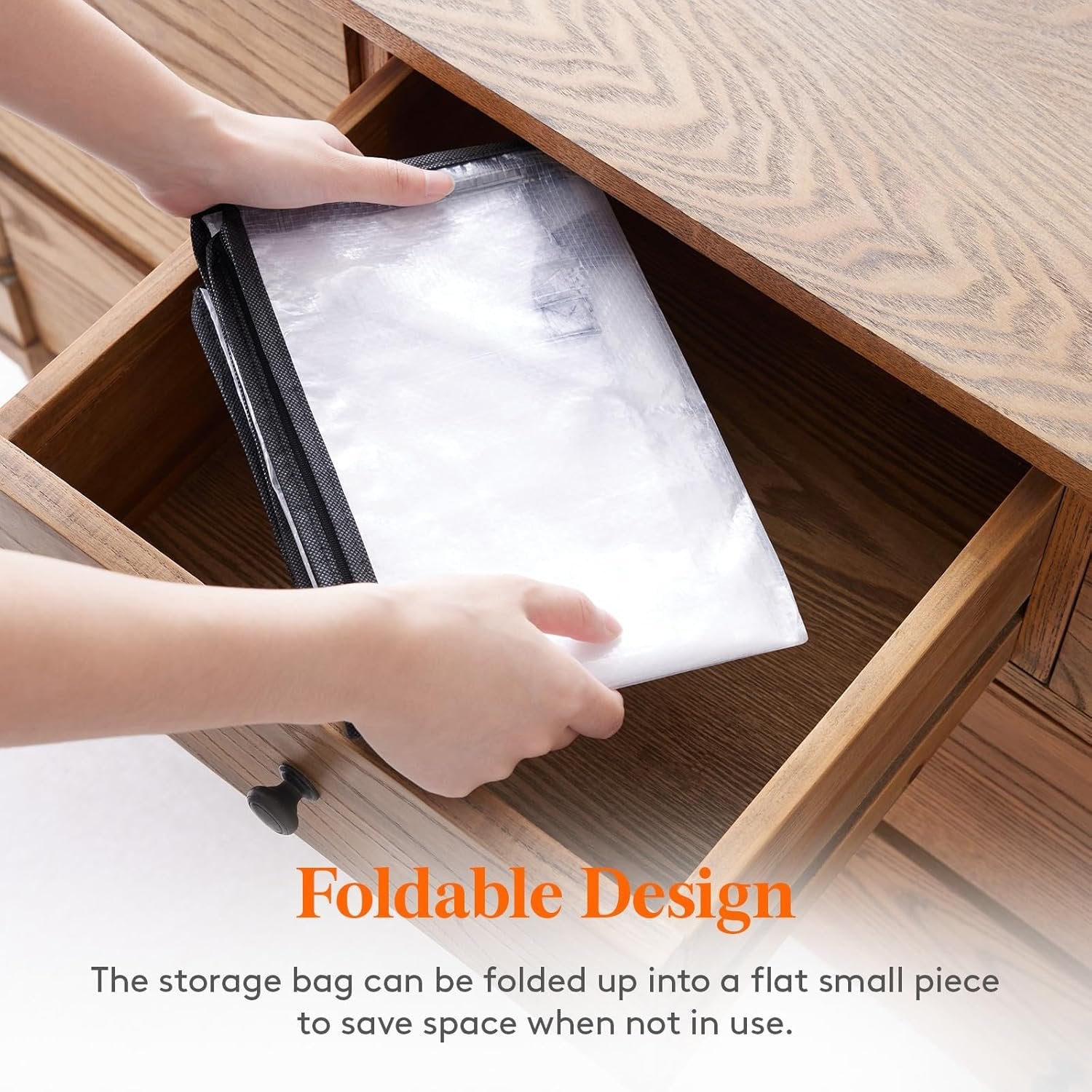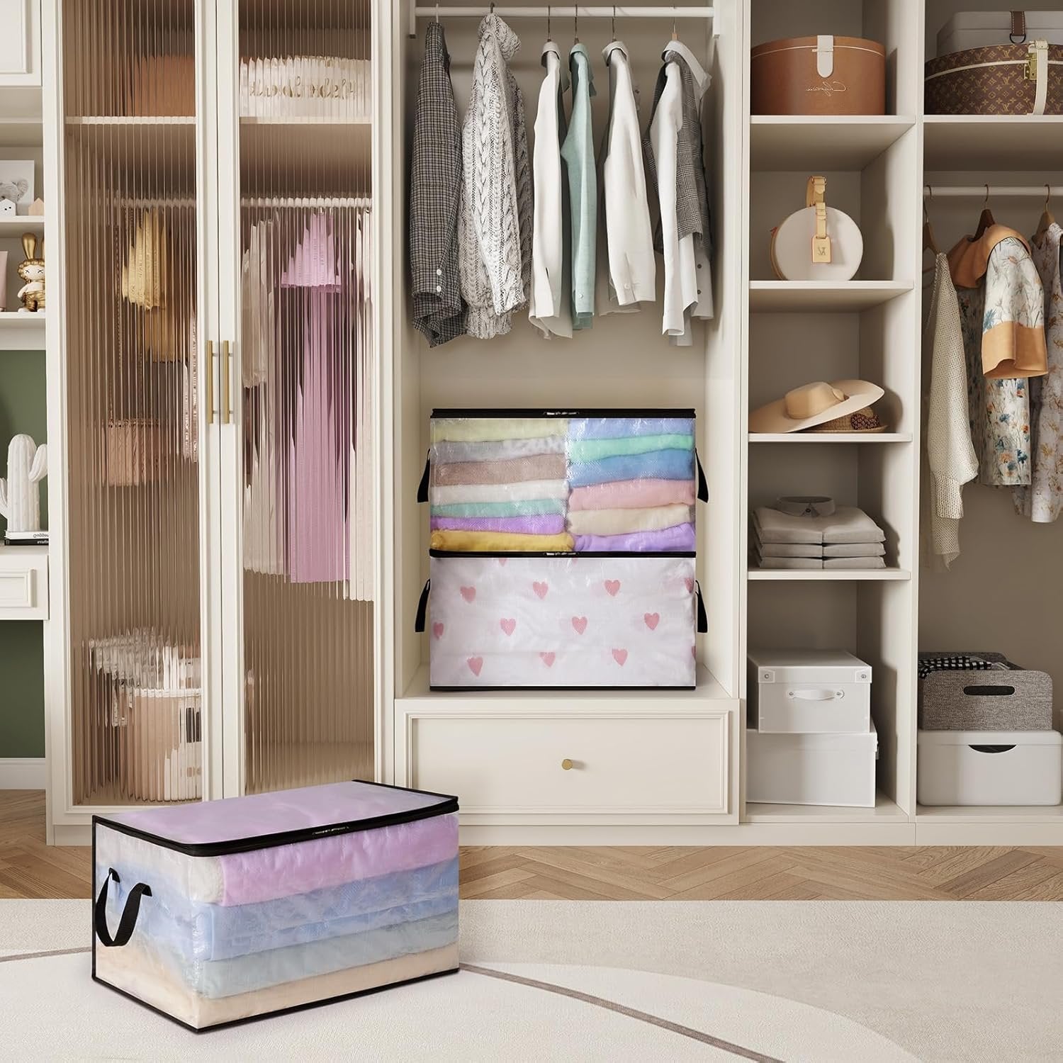 Long Lasting: The storage bags are expertly crafted from high-quality, durable PP material, known for its exceptional strength, thickness, and resilience. This heavy-duty material surpasses ordinary plastics in terms of toughness, tear resistance, and abrasion resistance. Premium Material: The clothing storage boasts a construction using premium-grade PP plastic, renowned for its enduring durability and exceptional clarity. With meticulous stitching and impeccable craftsmanship, these clear storage bins with lids offer a level of quality that exceeds expectations. Spacious Capacity: The set includes 6 storage bags, each measuring 21.7"(55cm) x 13.8"(35cm) x 12.4"(31.5cm). Offering 60L capacity, these moving boxes are specifically designed to accommodate belongings from sheets, blankets, and quilts to seasonal clothing, pillows and even Christmas wreaths, these versatile storage totes provide ample space for all your storage needs. Versatility: Whether you're utilizing it in dormitories, attics, basements, or bedrooms, this blanket storage container seamlessly blends into any setting while maximizing available space. Rest assured, your blankets will remain neatly organized and easily accessible, regardless of the storage area you choose.
