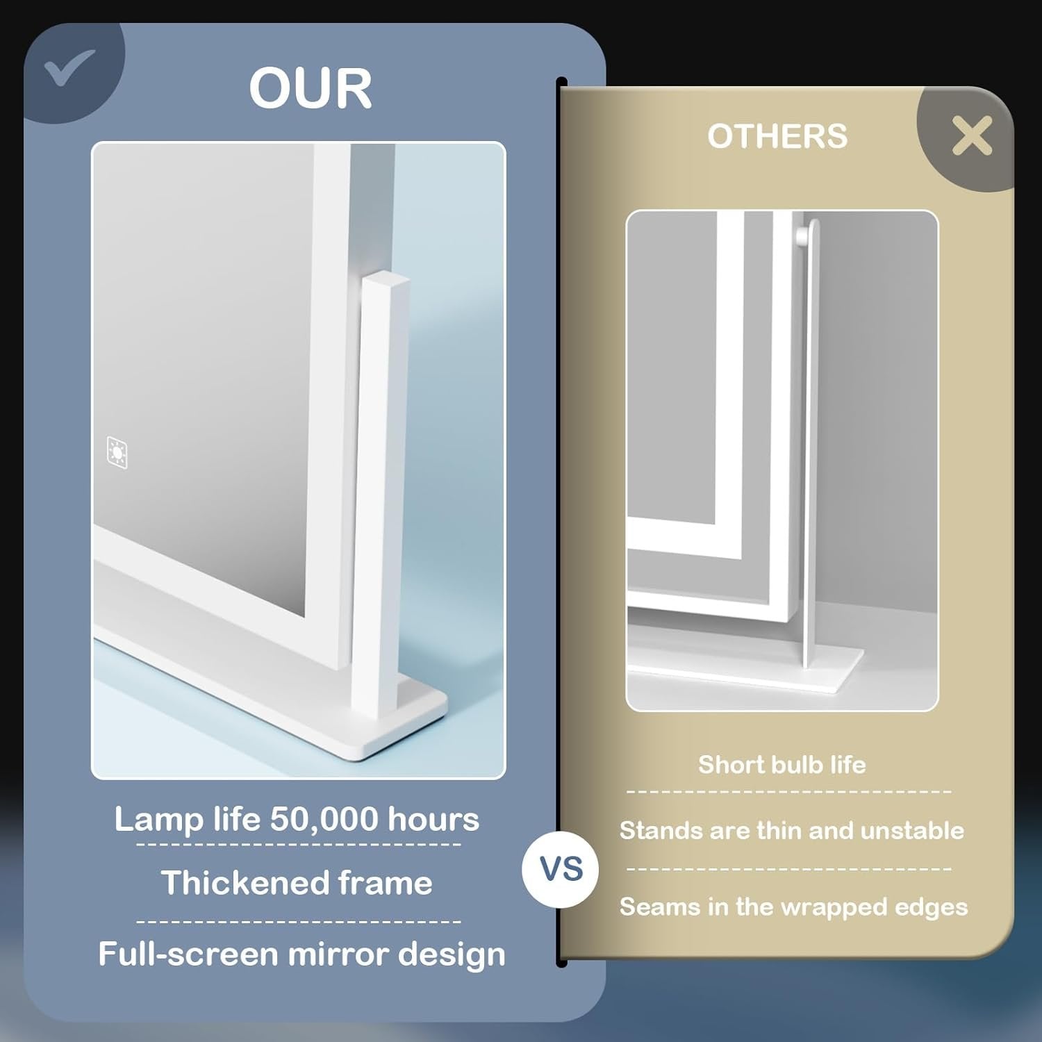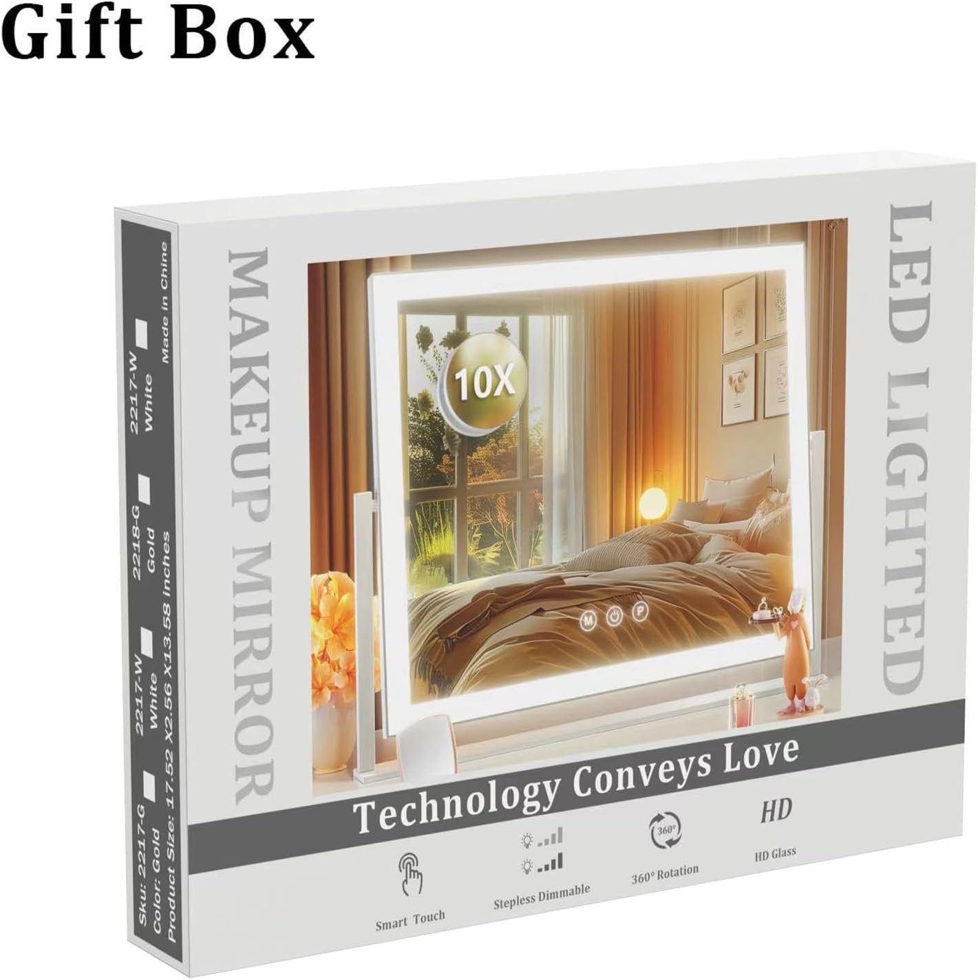👍【No Installation Required】The make up mirror doesn't require any complicated installation, all you do is plug the mirror in, and it’s working. 👍【Upgrade brightness】Most of the makeup mirrors with light bars on the market only have 120 light beads, which makes consumers feel that the lighting is not enough. We have improved on this! We have a full 180 light beads light bar per meter,which greatly improving the brightness of the makeup mirror. 👍【360° Free Rotation】The tabletop light up mirror features a 360° free rotation, allowing you to fix the body of the mirror at any angle you need. This ensures a perfect and comfortable perspective, making it easier and more convenient to enjoy your makeup routine. 👍【Perfect size professional mirror】dressing mirror large size: 17.3 x 13 "W, providing you with the perfect perspective; frame using strong aluminum alloy .of copper-free silver-plated glass, even if the glass is broken, it can maintain the bonding state without causing damage 👍【Detachable 5X Magnification mirror】detachable 5X Magnification mirror helps you to see every detail clearly and apply delicate makeup for eyeliner, eyebrow and lipstick.【NOTICE】Magnifying not the entire mirror,it is 4 inch detachable 5X Magnification