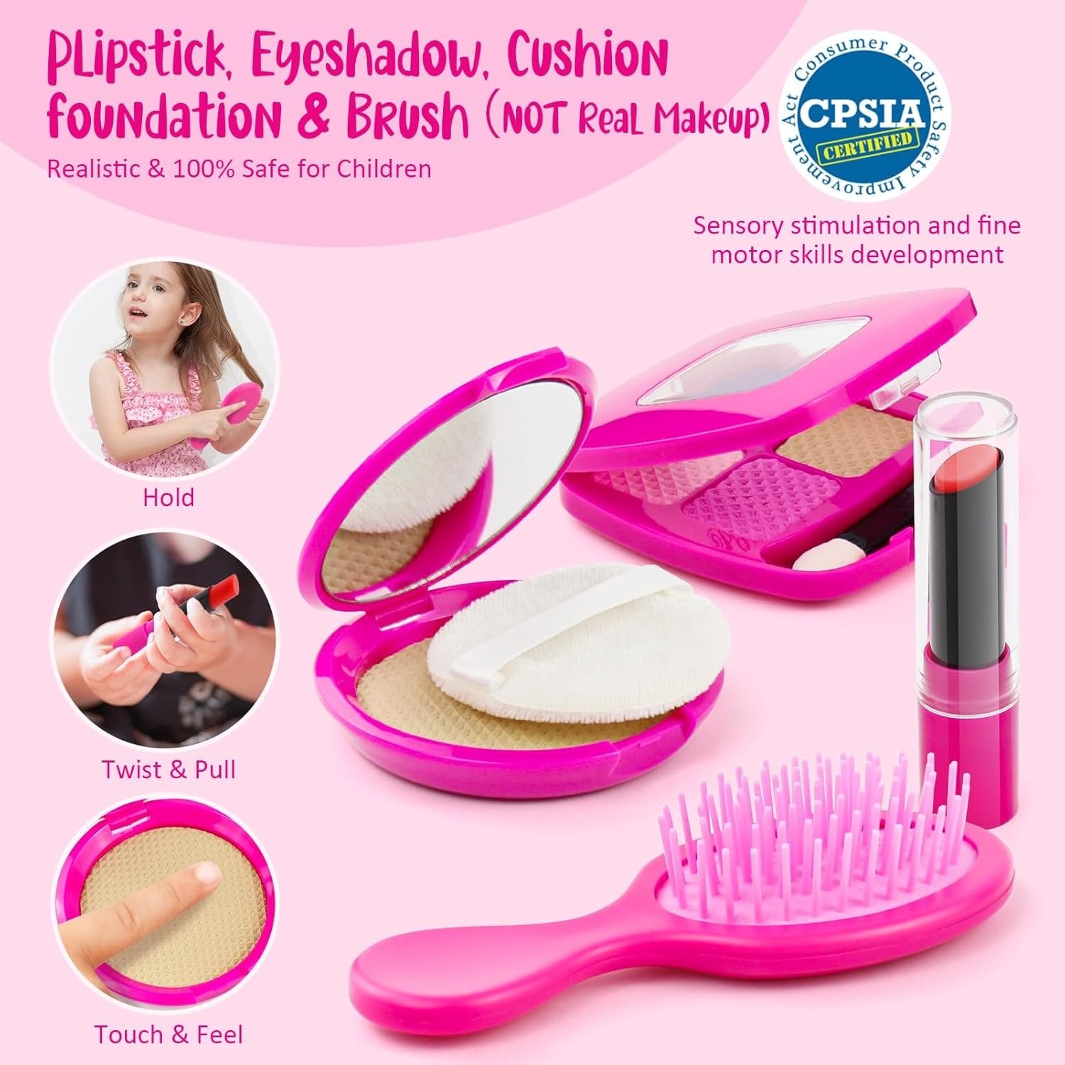 ❤49Pcs Travel Play Purse Set: Our toy purse includes all of the essentials to travel in style: 1 girl purse, 1 wallet holds 25pcs play money and 6 uniquely designed play cards, sunglasses, 1 car key fob, key rings w/ 4 keys, 1 cellphone and 1 headset (no functions and batteries to ensure safety play), 1 hairbrush, 1 pack of tissue for actual use, fake Makeups (lipstick, cushion foundation, 1 4-shade eyeshadow), 1 hand sanitizer keychain bottle, 1 eye mask, 1 play airplane ticket and 1 passport. ❤Quality Assure: Our purse kit is made of durable and long-lasting material, also the makeup toys look real but won’t make any messy which keeps your daughter happy and engaged in imaginative play for endless hours. ❤Stylish Girl Purse: The toddler purse is made of soft leather with a gold zipper, equipped with carrying handles and a shoulder strap for easy transport. All princess accessories are covered and stored perfectly in the oh-so-chic purse. Perfect for any daily brings or royal adventures. Purse size: 9.6in x 7.8in x 3in. ❤Play to Learn: Your children will pretend to use this purse accessories to check-in and on board the plane by their own, which sparks imaginative play, develops life skills, social skills and cultivates their desire of exploring the world! They can also customize our play cards (IC card, credit card, hotel gift card, kids museum pass, salon card, ice-cream card) by filling information at the back and place their photos on the card and passport. Everything just looks like the real! ❤Unique Design by Hohosunlar: With a bunch of travel accessories, this play set is sure to be a must-have for your princess’s daily adventure! Great gift for birthday, Holidays, Christmas, and other special occasions for girls age 3+.