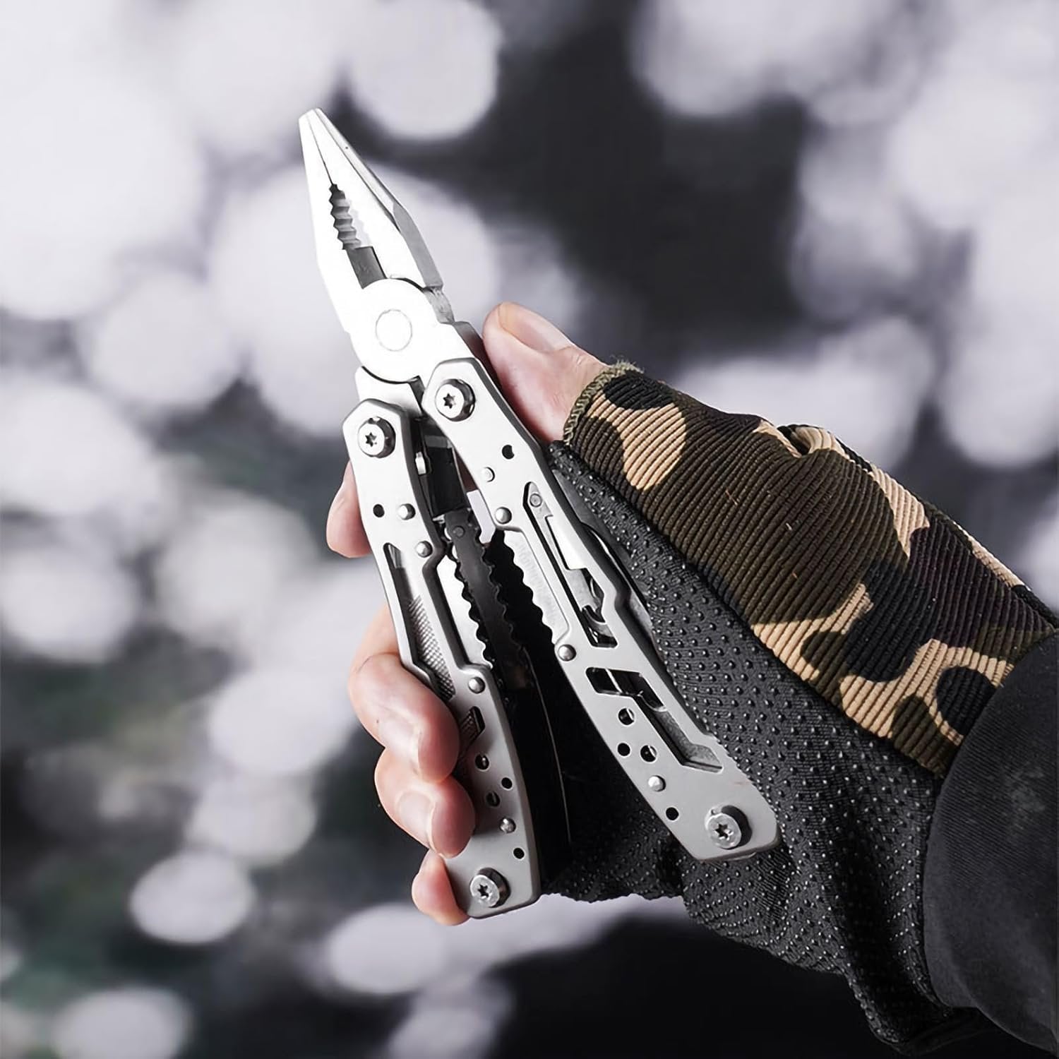 Versatile Multi-Tool: This pocket-sized multitool features 14 essential tools including pliers, wire cutters, knives, screwdrivers, and more for all your outdoor adventures and DIY projects. Durable Construction: Crafted from high-quality stainless steel, this multitool is built to withstand heavy use and harsh environments. Compact and Portable: With its folding design, this multitool easily fits in your pocket or backpack, ensuring you're always prepared. Safety Lock: The integrated safety lock prevents accidental deployment, keeping you secure during storage and transport. Convenient Carrying Case: Includes a durable nylon sheath for easy carrying and protection when not in use.