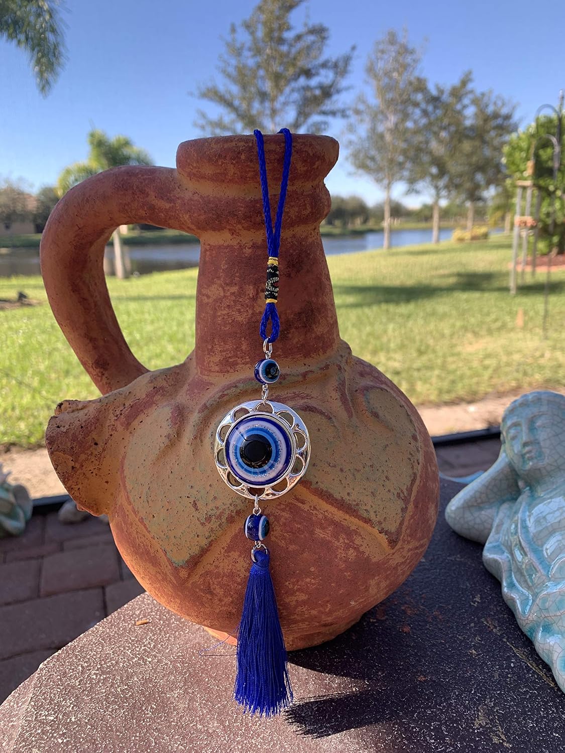 LUCKBOOSTIUM Lucky Eye Wheel of Fortune Wall and Door Hanging Ornament with Gold Metal Chain