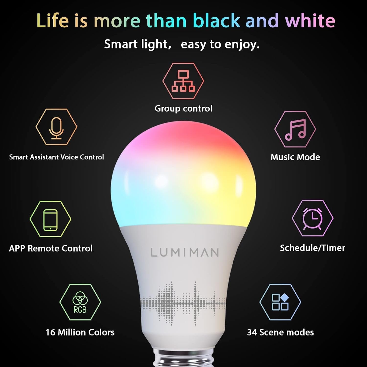 LUMIMAN Smart Light Bulb, Color Changing Smart Bulb Works with Alexa Google Home Smart Life App, RGB 16 Million Music Sync,2700K-6500K 800LM 60W Eqv., No Hub Required, 4 Pack